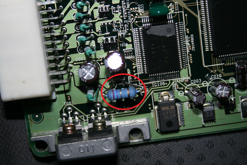 załączam zdjęcie z wymienionym opornikiem, na płytce jest opisany jako R620, wymieniony na 2,7 ohma.