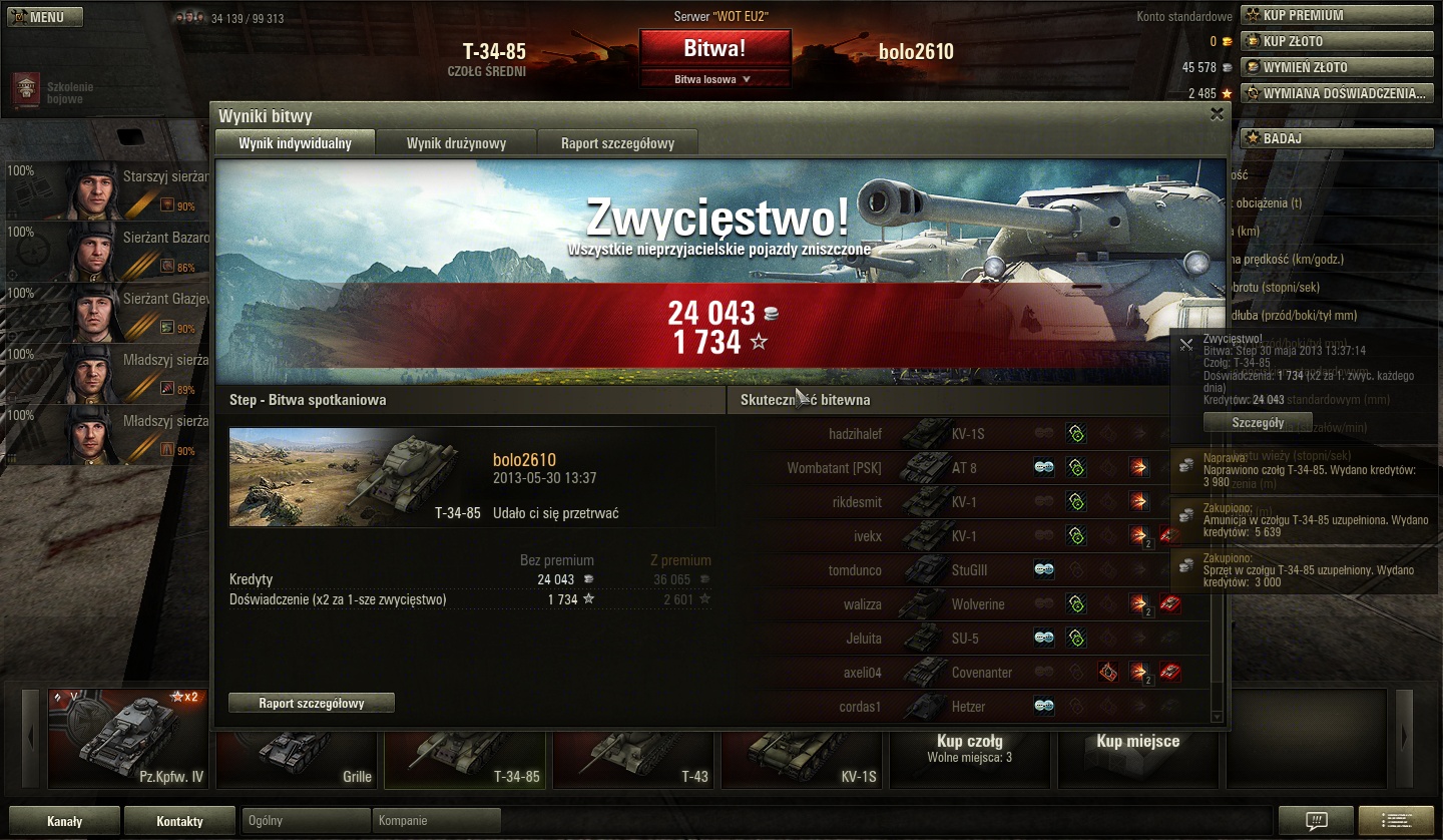 Zakupiono czołg 'VK 45.02 (P) Ausf. B'. Wydano kredytów: 3 698 000.