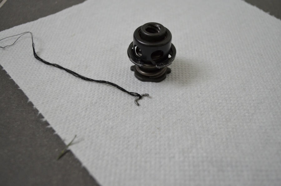 Pod sprężyną widać uszczelniacz grzybka, który nie pasował (był za duży). Mimo posiadania walizki z ponad 400 szt. różnych oringów żaden z nich nie spasował. Najwyraźniej mój zestaw naprawczy nie był 100% odpowiednikiem. Uszczelniacz pozostał stary, choć w dobrym stanie.