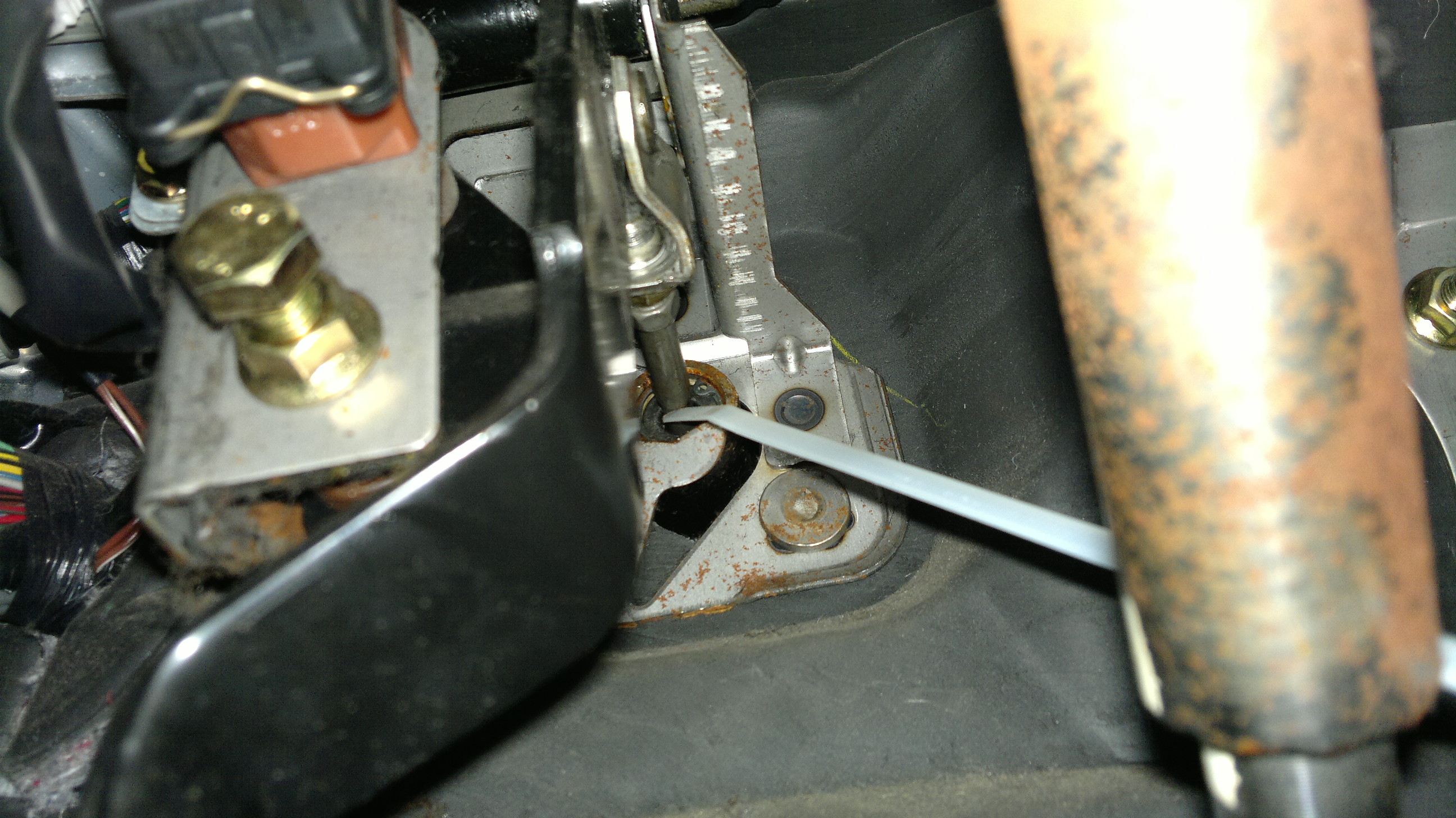 znalazłem co u mnie piszczy przy wciskaniu sprzęgła, i jest to w zasadzie w końcowej fazie wciskania, w załączniku wskazane białym sztrapsem, jest to chyba jakaś guma?