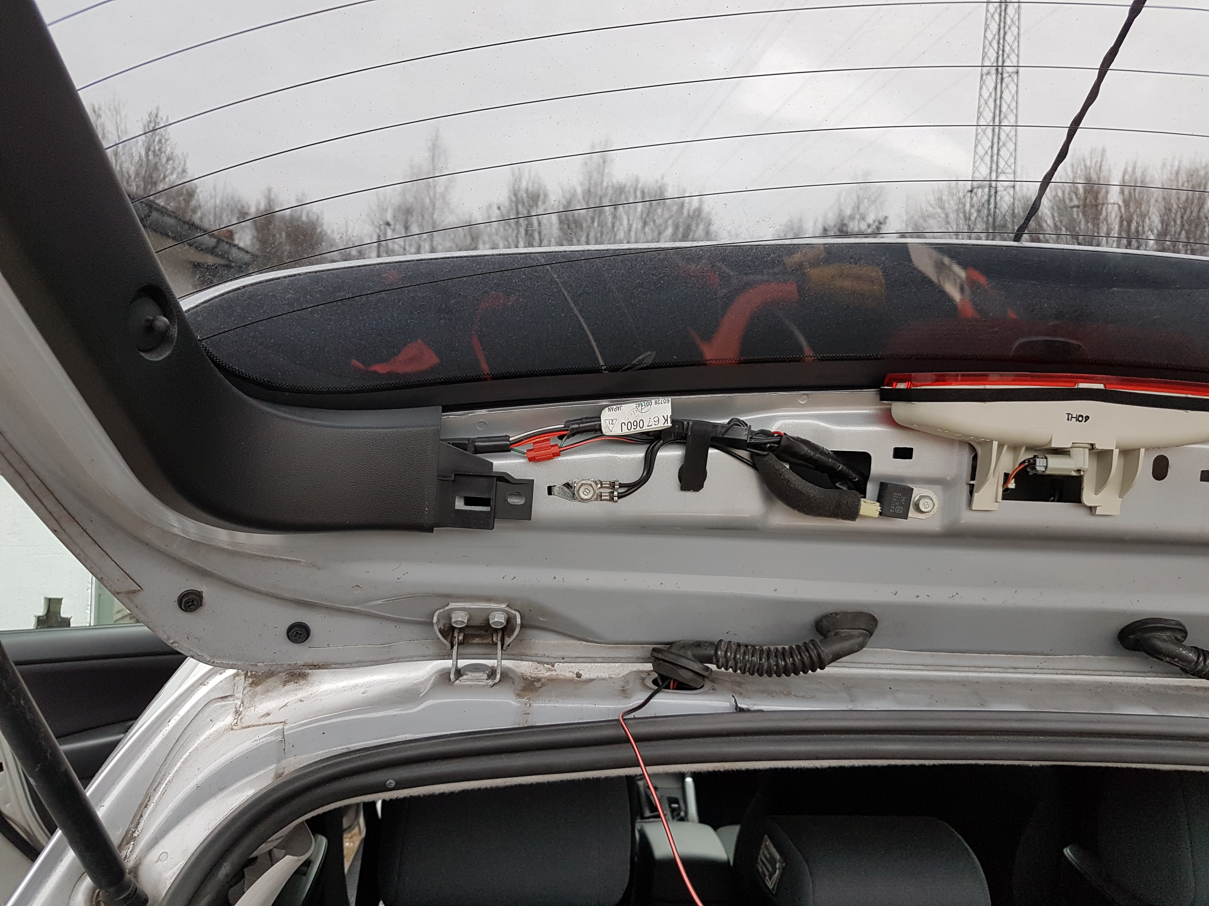 Ja wpinałem się w słupku pomiędzy małą szybką, a klapą. Odseparowałem metodą prób i błędów właściwy przewód – zielony z czarnym paskiem. Poniżej zdjęcia, wiem że wykonanie nie jest za profesjonalne.
