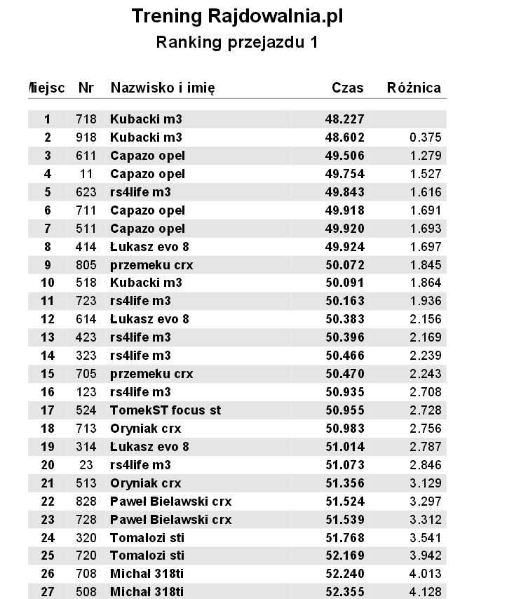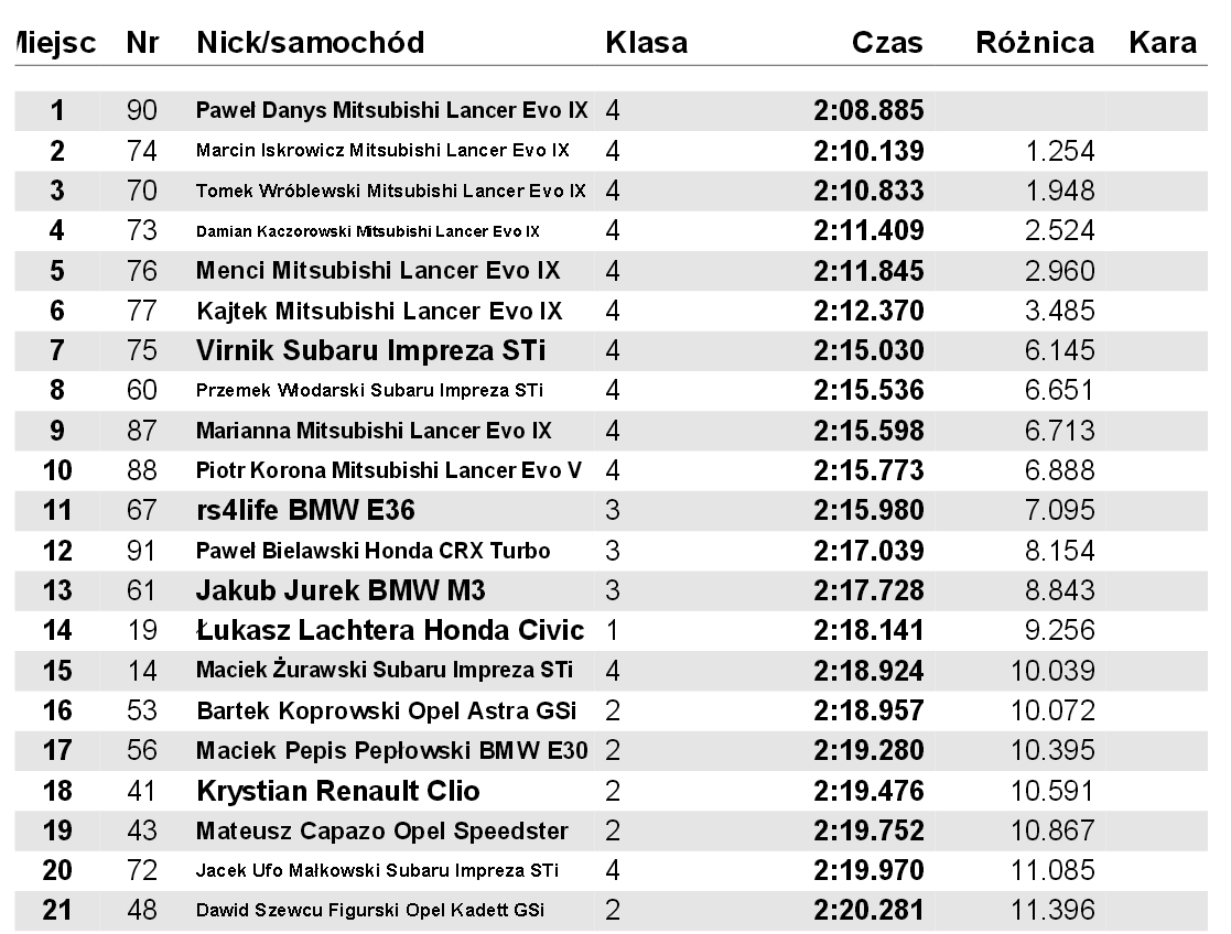 Dzisiaj kolejny dzien na torze we wrocku. Ostatni trening przez sobotnimi zawodami. Heble wkoncu sie nie przegrzewały, wiec dzionek zaliczony do udanych. Ponizej wyniki a fotki beda, jak beda:D