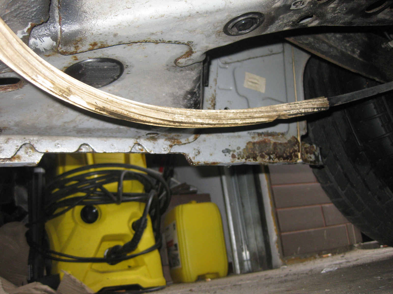 Ostatnio też zabrałem się za podwozie i muszę stwierdzić że przynajmniej w moim przypadku nie było tak źle. Po lekturze tego potosu byłem trochę przerażony. Robiłem podłogę, tylne zakola i zawiechę z przodu. W najgorszym stanie była miska olejowa ( głębokie wżery), zawieszenie całe rude, ale podłoga była ok, w kilku miejscach gdzie nie było czarnej masy tylko polakierowany metal pojawiły się naloty korozyjne i pierwsze wżery. Z tego co widziałem u siebie najwięcej rudej znalazłem na podłodze za przednimi kołami, progi – część najbliżej ziemi (na niej opiera się podnośnik) tuż przed tylnym kołem od strony wewnętrznej, fabryczne łączenia blach które nie były kompletnie zakryte konserwacją. Bardzo miło byłem zaskoczony stanem nadwozia pod gumowymi osłonami progów była pod nimi kupa syfu i piachu ale po umyci okazało się że tam nie było nic do zrobienia – żadnej korozji. Tylne nadkola były zakonserwowane, kilak niewielkich ognisk na wystających blachach i to wszystko, zeszlifować pomalować, odtłuściłem i nałożyłem świeżą warstwę zabezpieczenia. Te filcowe nadkola całkiem przyzwoicie chronią blachę nadkoli przed mechanicznymi uszkodzeniami.