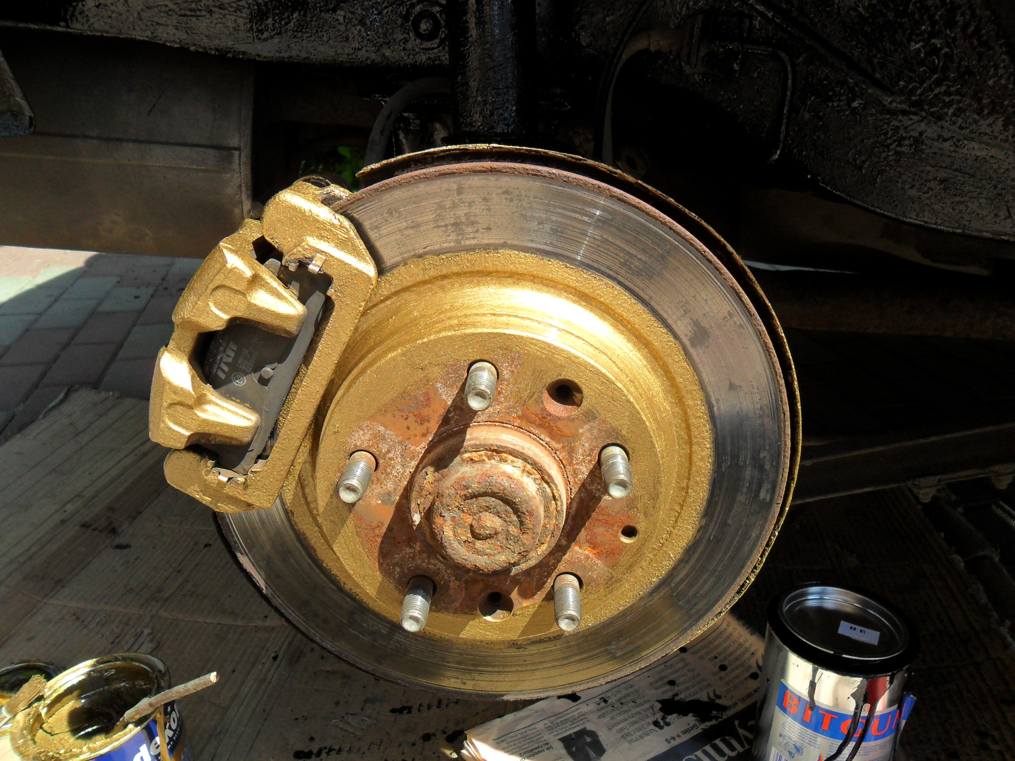 Auto dostało zaciski pomalowane w złocisty kolorek.
