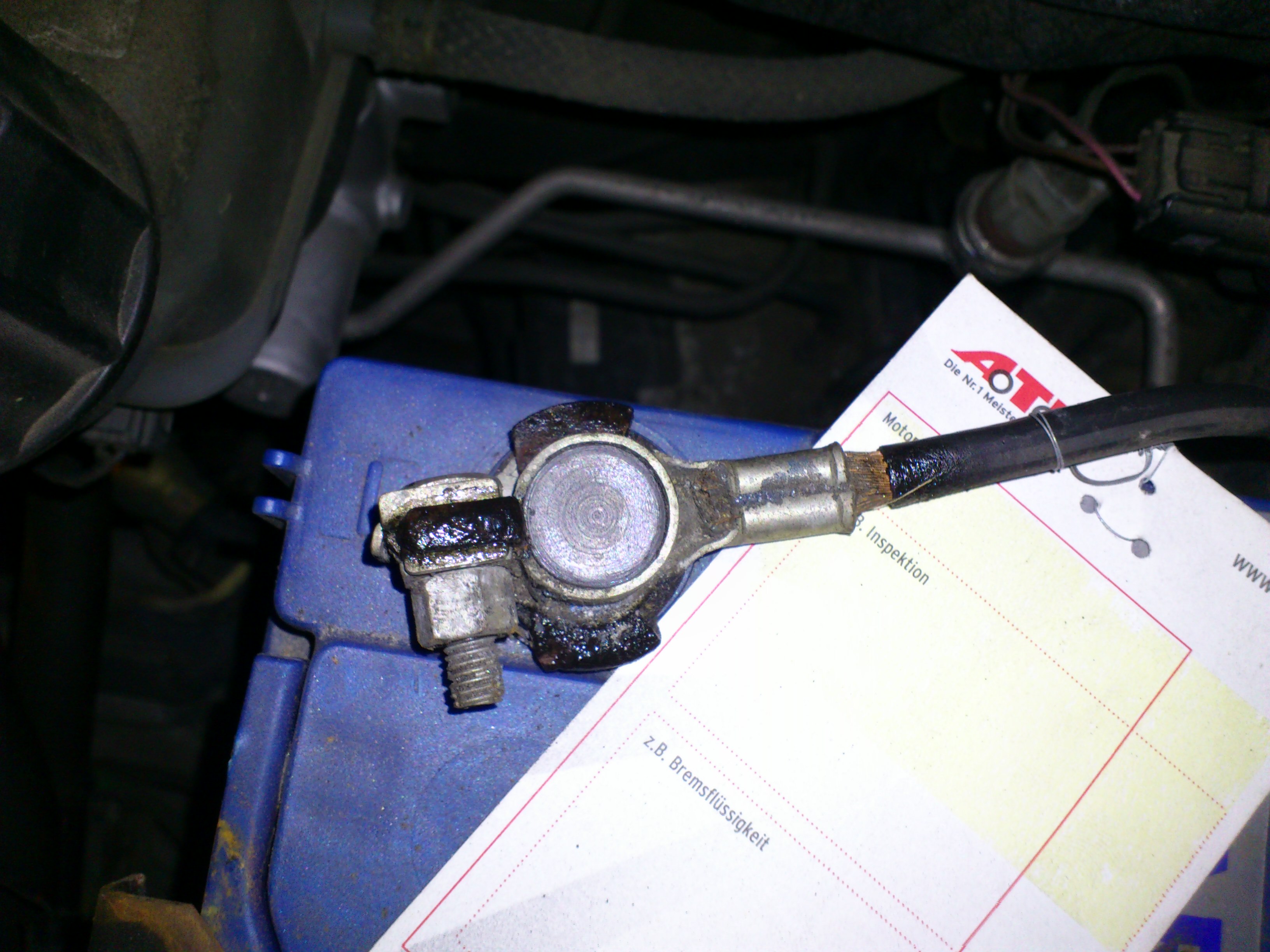 Witam, około miesiąc temu ni z gruchy ni z pietruchy rozładował mi się akumulator w aucie, nie było mrozów, nie zostawiłem nic włączonego w środku. Jedyne co to jakiś debil w nocy mi auto pomidorami obrzucił ale wątpie czy to ma jakiś związek. Naładowałem go prostownikiem bo chciałem zobaczyć jak się sytuacja będzie rozwijać. Dodam że aku ma 2 lata. Tak więc cały miesiąc było wszystko ok, a dzisiaj rano ledwo co mi odpalił ( też nie było mrozu ) zajrzałem pod maskę a tu takie coś na klemie od minusa ( zdjęcia poniżej ), cała zaśniedziała. Tu się rodzi moje pytanie: chciałem ją wyczyścić ale jak ruszam tą śniedź to wydaje mi się że tak głęboko wżarła że ta klema mi się po prostu rozleci. Powiedzcie mi czy śniedź może tak utlenić metal że ten się aż rozpadnie czy to może tylko taka warstwa napuchła na klemie i mogę ją bez stresu stamtąd zedrzeć?