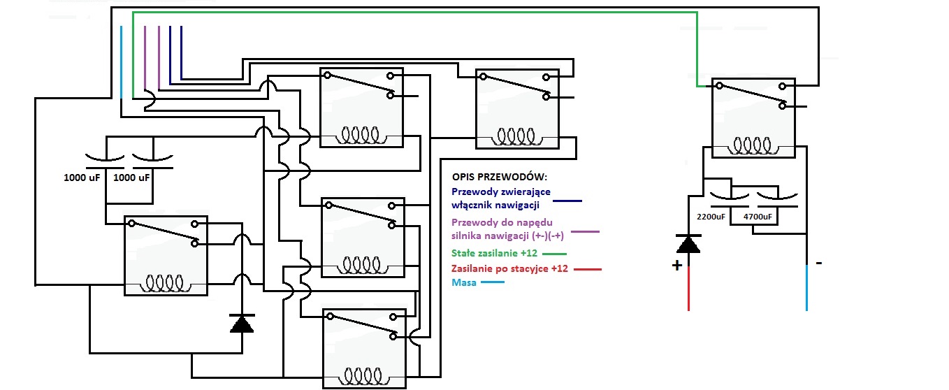 Składam już swój układ i przemyślałem to ostatnie rozwiązanie. Nie wystarczyłoby wpiąć tych kondensatorów pomiędzy '+ po stacyjce' a 'mase' i dodać diodę? Mogę się mylić dlatego pytam na forum ;p