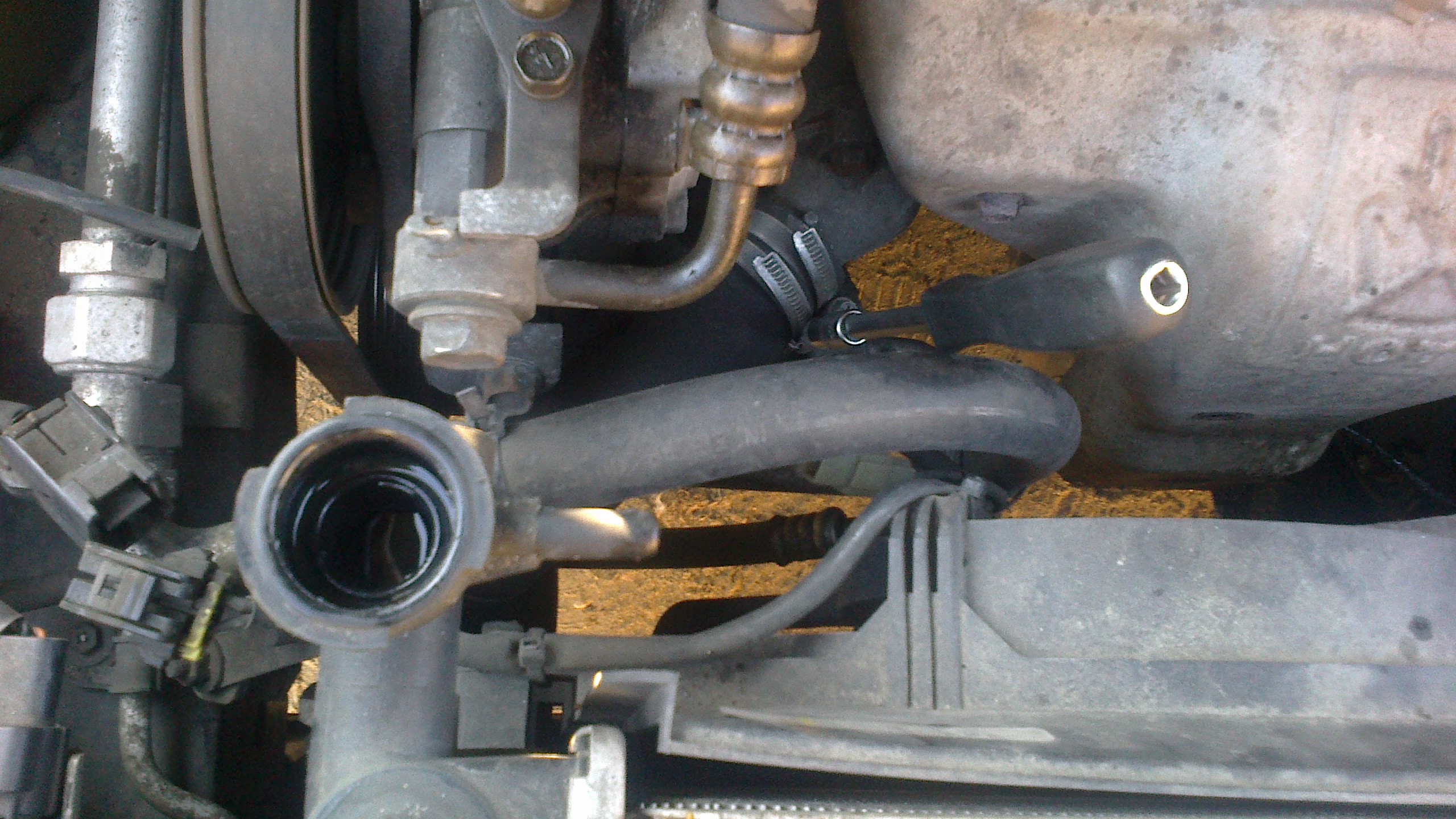 2. Płyn sobie leci, a w tym czasie zaczynamy odkręcać wlot powietrza kluczem 10 oraz uchwyty trzymające chłodnicę i owy wlot kluczem 13. Wtyczki wentylatorów ( u mnie dwa) oraz rurkę od zbiorniczka wyrównawczego