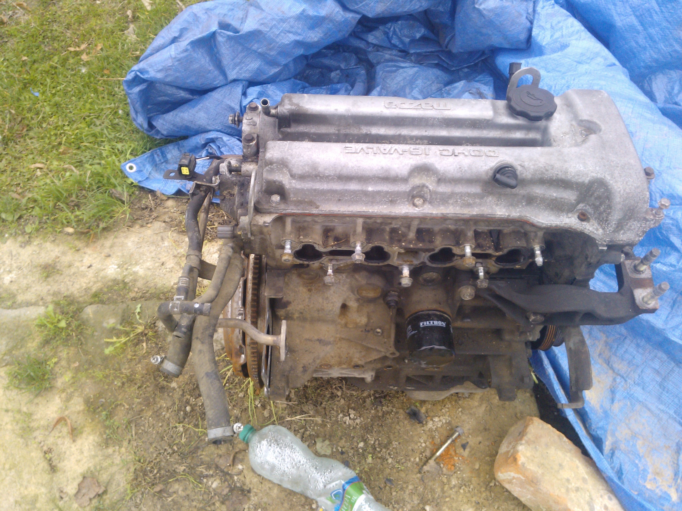 Mazda jeździła w dalekie trasy po niemieckich autostradach, wiec zapewniała mnie właścicielka ze wszystko było robione na czas;;) Jak się jednak okazało silnik był w kiepskiej kondycji na zimnym silniku kopcił na biało i brał olej podejrzewam że jest głowica do roboty lub pierścienie olejowe. zaraz po zakupie wyglądała ona tak;