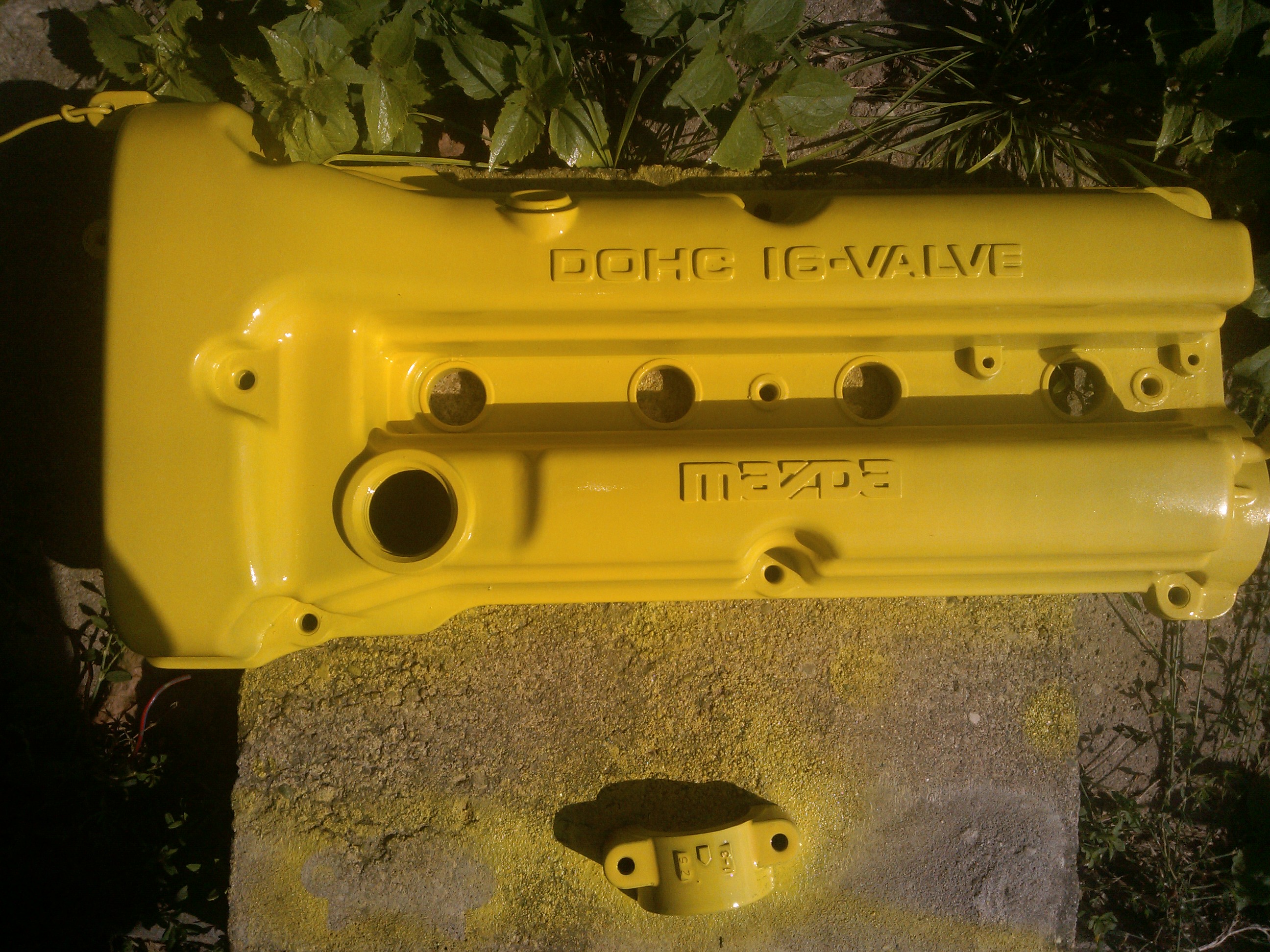Trochę się pozmieniało od wakacji mazda ma silnik z wersji poliftowej 98r , przedni zderzak, maskę, tylną blendę, antenę od radia fotele z przodu i kanapę z tyłu , kierownicę z wersji poliftowej , wydech końcowy z kwasówki dwururka marki sebring , pomalowałem sobie również pokrywę zaworów na zółty kolor, dostała również nowe przewody NGK i świece oraz sprzęt grający kupiony za okazyjną cenę wzmacniacz boschman i tuba która była w kiepskim stanie ale dzięki moim zdolnosciom manualnym została pokryta czarną ekoskurą i maskownica w kolorze pokrywy zaworów kilka zdjęć troche ich mi się nazbierało