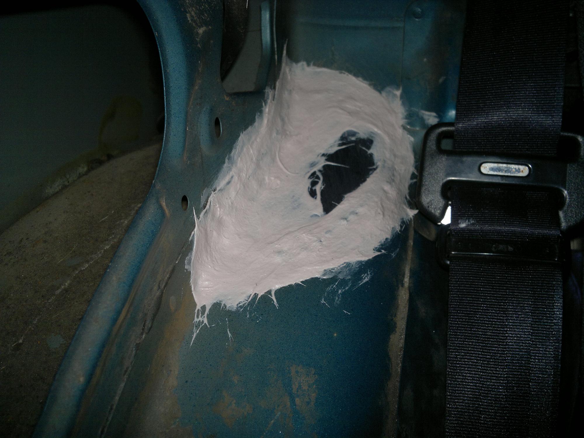 Po ściągnięciu plastików bocznych z tyłu w prawym nadkolu było troszkę pordzewiałe to uderzyłem w to kluczem i zrobiła się dziura :D więc trzeba było zepsute wyciąć i wspawać kawałek blachy i do tego konserwacja :)