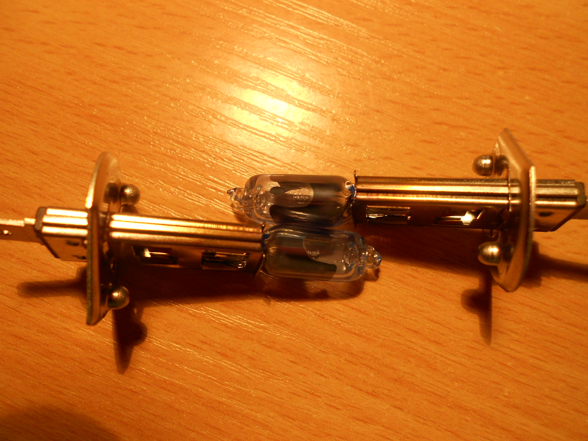 Żarówki Tungsram Sportlight BLUish (up to +50%) zamontowane w mojej M6 jako światła mijania. Po ok trzech miesiącach (w dzień jeżdżę na DRL'ach) żarówki zaczęły bardzo słabo świecić. IMO lepsze światła miał Fiat 126p. Po wymontowaniu ich z lamp okazało się , że na szklanej bańce "wypaliła" się folia/farba wewnątrz. W efekcie światło z żarnika nie miało szans przedostać się poza bańkę poza niewielkimi szczelinami widocznymi na zdjęciu. Na początku świeciły bardzo dobrze, faktycznie światłem wpadającym nieco w zimną biel. Jak dla mnie za szybko "padły"