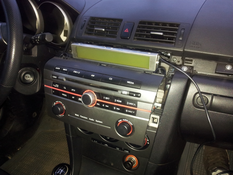 Witam forumowiczów, właśnie zakupiłem radio CD do mazdy rocznik 2005, wersja wyposażona była tylko w radio fm z wyświetlaczem zasilanym z radia. obecne radio cd posiada wyświetlacz zasilany oddzielnie, trochę kombinowania z tym jest ale wszystko działa jak należy, a więc podłączenie jest jak najbardziej wykonalne (ten temat był poruszany na forum). Obecne radio ma przyciski SET i Media. Udało mi się podłączyć AUX poprzez styki 1,3,5,7,13 , na forum jest troszkę inaczej niż sprawa wygląda z moim radiem, a mianowicie złączenie styków 1 i 13 rzeczywiście po naciśnięciu przycisku media uaktywnia AUXa lecz zwarte styki sprawiają że nie słychać dźwięku (do styków 3,5,7 jest podłączony minijack) dopiero rozwarcie styków powoduje że muzyka jest słyszalna. Wniosek z tego taki że chcąc używać AUXa za każdym razem trzeba go po prostu uaktywniać przez krótkotrwałe zwarcie 1 i 13 bynajmniej u mnie. (dla jasności styk 1 to patrząc na gniazdo radia pierwszy po lewo, obok jest 3)