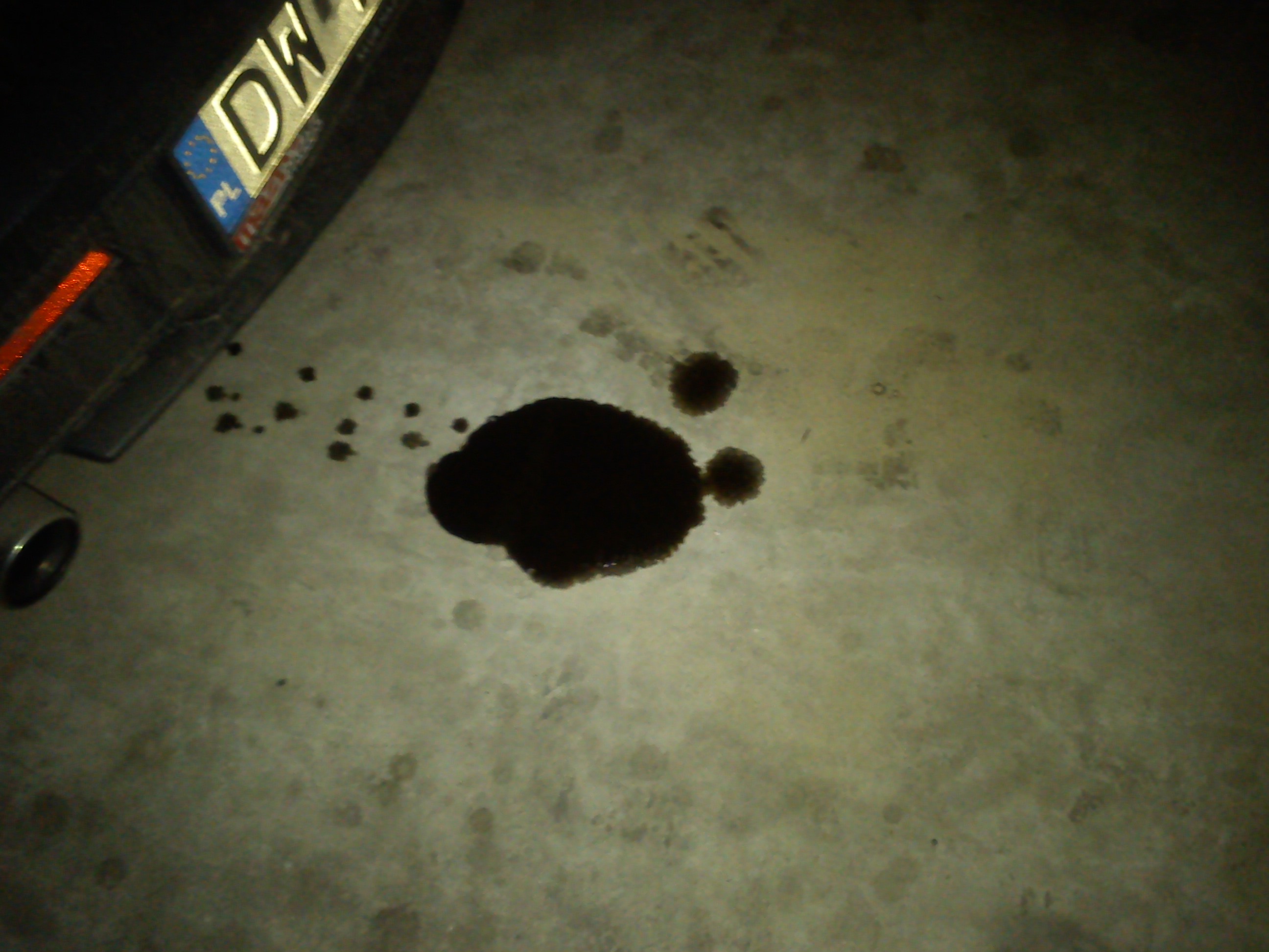 Miałem wyciek spod korka spustu oleju na tej samej podłodze , silnikowy wyglądał jak " woda ' ten to ciemna gęsta mocno śmierdząca maź – do dziś śmierdzi tak " ostro "
