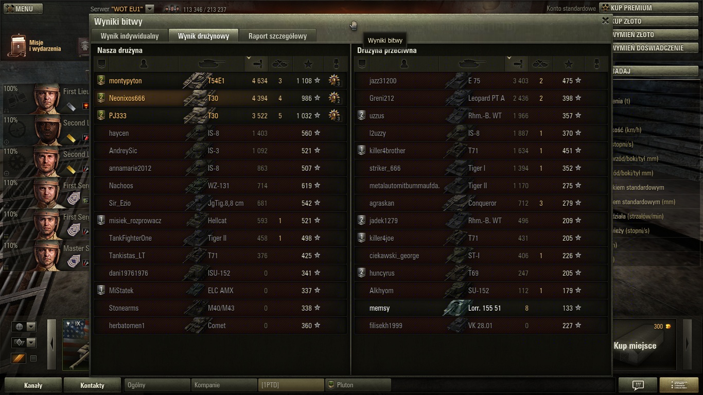 Adamos napisał(a):Wczoraj grałem w kumplami w plutonie to od razu lepiej. Nawet powyżej 50% wygranychTeraz rano chwilę pograłem to znów nic nie idzie wygrać......samodzielnie walki nie wygram...a jak jechaliśmy 2x KV-3 i mój KV-1S (IS wpadnie w weekend) to już coś można pograć.