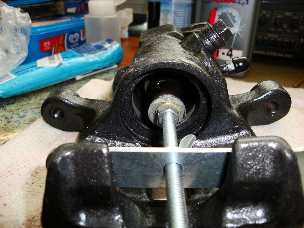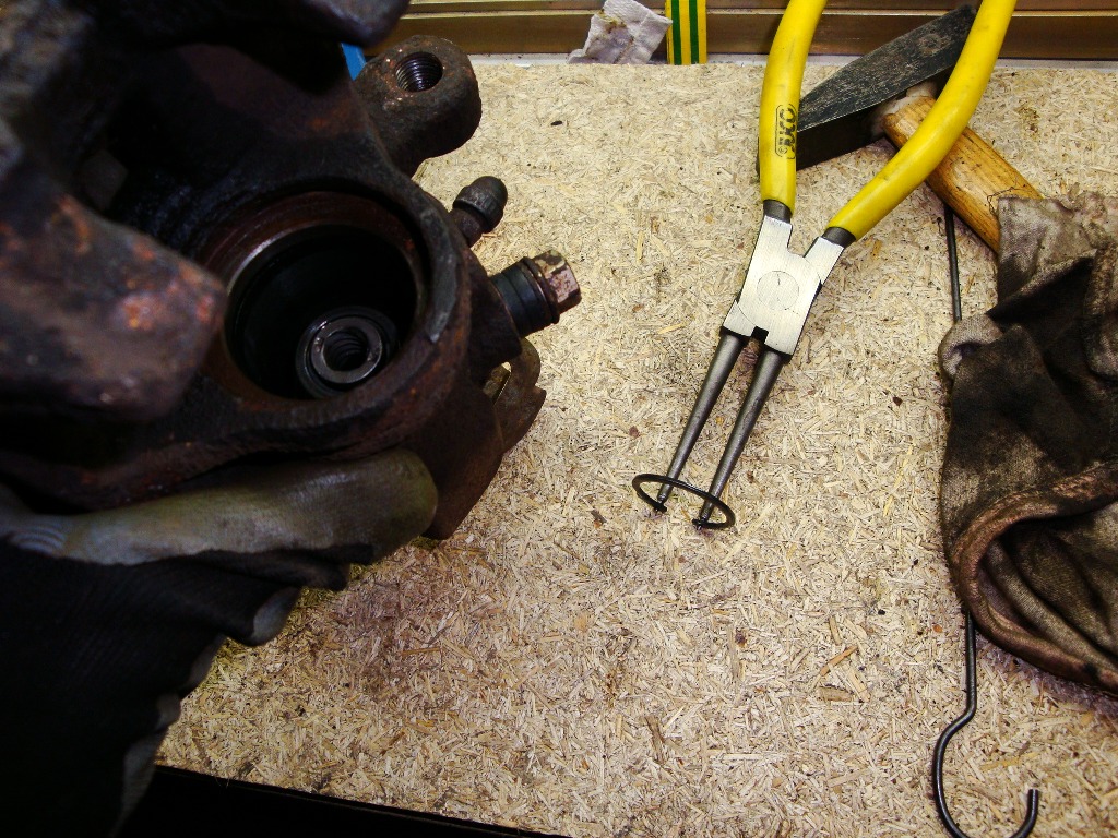 Od siebie mam dwie uwagi mianowicie, wypięcie zegara zwykłymi szczypcami nie sprawia większych problemów, natomiast jego wpięcie z powrotem w moim przypadku okazało się nie wykonalne. Problemem było doścignięcie go do dana tłoczka (standardowe szczypce są za grube) Dopiero zeszlifowanie szczypie (z oryginału została mniej więcej połowa) umożliwiło właściwie natychmiastowe załatwienie sprawy. Druga uwaga to pierścień stalowy przytrzymując gumową osłonę tłoczka jego rozmiar jest prawidłowy problem zakładki bierze się z tego że gumka układa się w nie właściwy sposób wewnątrz wyżłobienia. pierścień nie wchodzi w ostatni zwój gumki tylko na ten zwój i nie ma dość miejsca żeby właściwie się rozprężyć. Zauważyłem ze w tedy nie da się lekko przesuwać gumki na tłoczku.