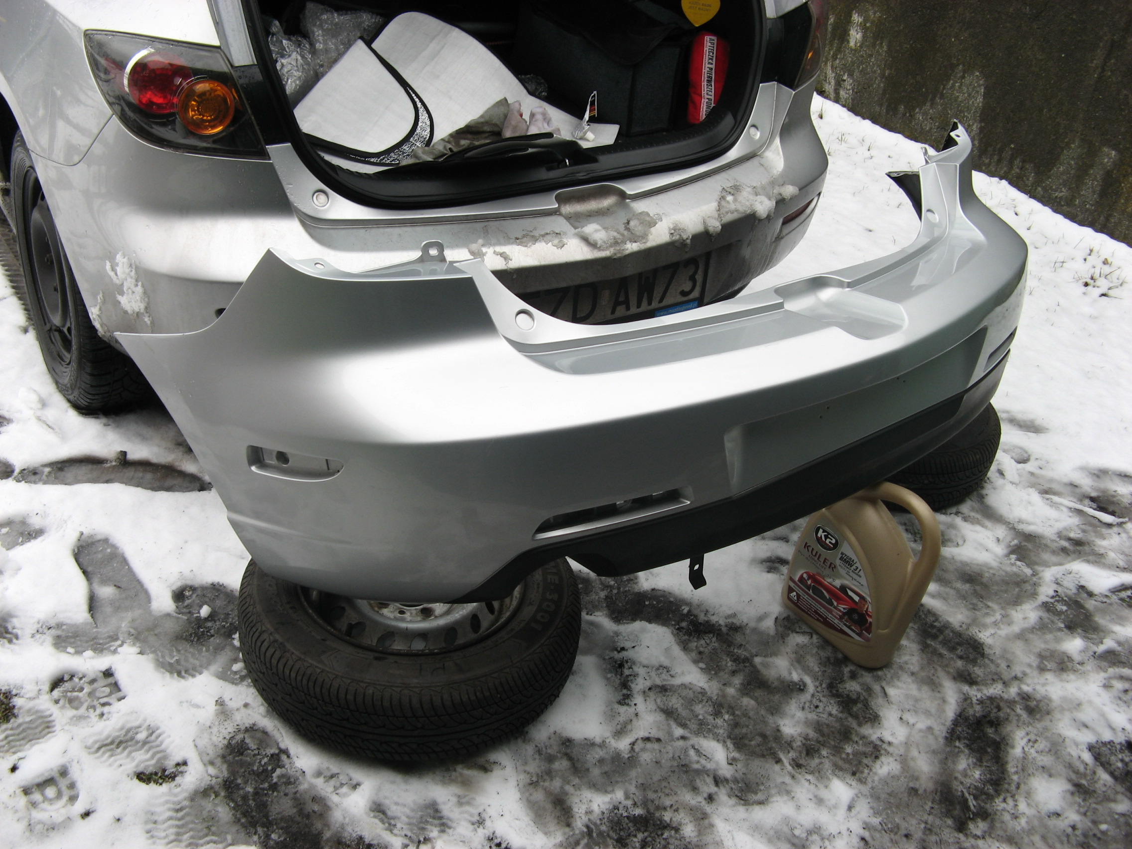 Wróciłem właśnie z garaż gdzie przy pomocy szmatki i pasty tempo spolerowałem nowy (stary) zderzak z liczny delikatnych obtarć i pozostałości innych lakierów.