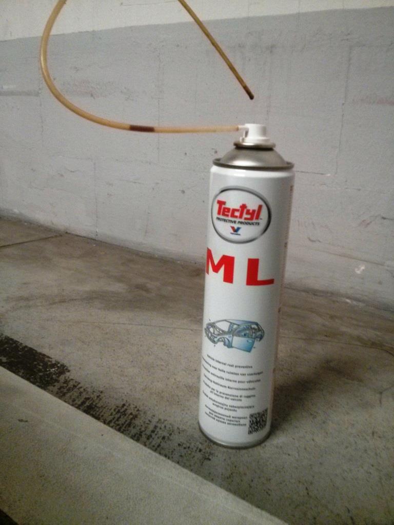 Po przemyśleniu co by tu jeszcze można było zrobić przy aucie, żeby lepiej zniosło zimę, w ruch poszedł Tectyl ML. Jak wczesną jesienią poprawiałem antykorozję podwozia, to za profile zamknięte się nie zabierałem, więc warto było to teraz zrobić. Środek wtryśnięty w otwory wszystkich drzwi i klapy bagażnika. Zużyłem ledwo pół puszki, a kupiłem dwie, więc jeszcze jak będzie okazja i czas, to pójdzie w progi, może maskę i wnęki bagażnika.