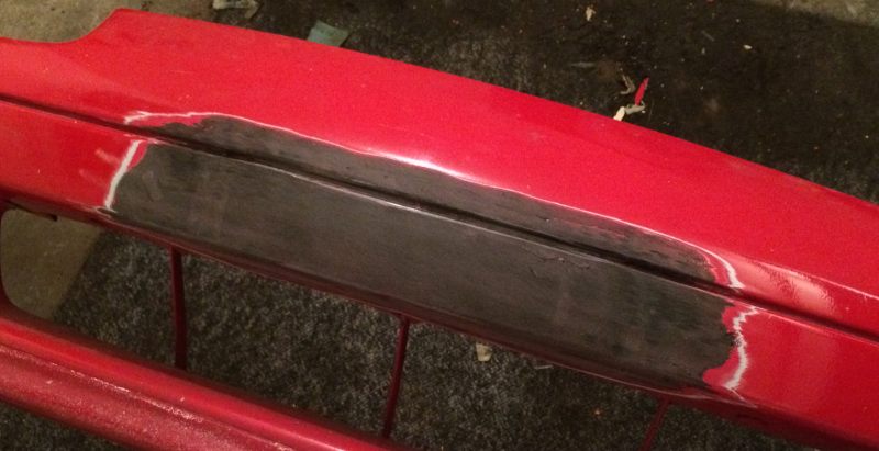Przedni zderzak zamarzył mi się bez wnęki na tablicę i jest. Ranty felg wstępnie wypolerowane. Same felgi rozkręcone, rotory i bębny oddane do piaskowanka. W międzyczasie przyszły opony – będzie all around 185/35 na 8,5