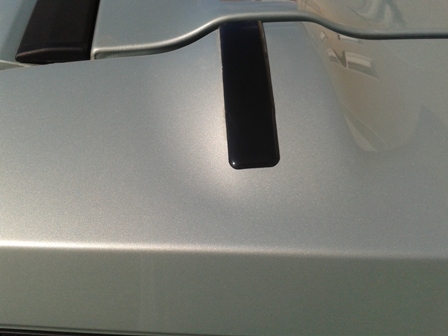 To jest naklejka 3D. Ja akurat trafiłem na zwykły czarny pasek bez żadnych napisów. Z jednej naklejki za kilkanaście zł wystarczyło na oba zawiasy. W moim przypadku oryginalna taśma klejąca nie wytrzymała wysokich temperatur do jakich nagrzewa się klapa i dlatego musiałem użyć lepszego kleju.