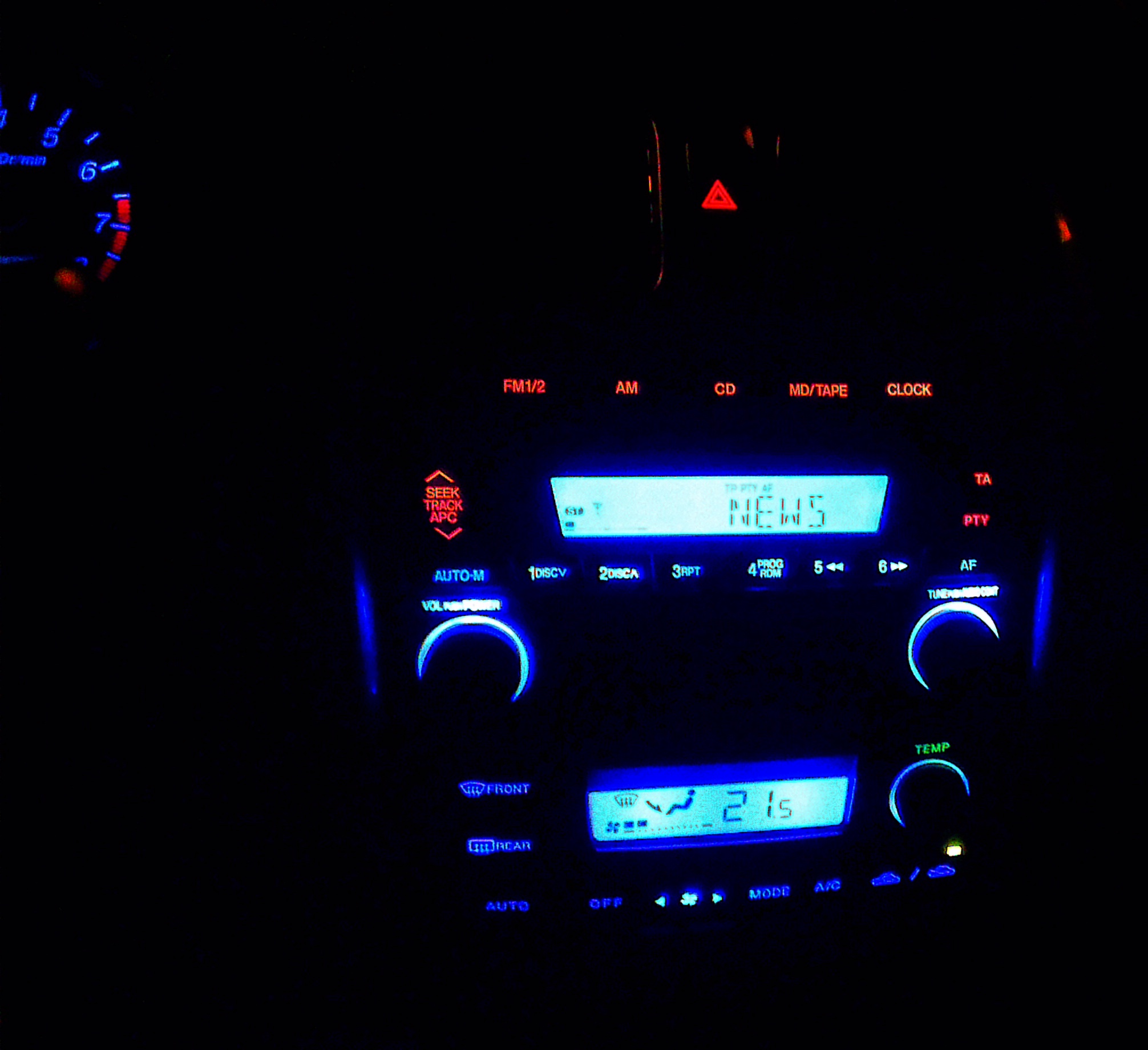 A to efekt po wlutowaniu niebieskich diod led. To co świeci na czerwono to pozostawione klasyczne żarówki które pomalowałem niebieskim lakierem do paznokci