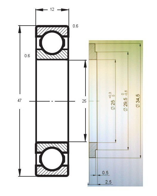 Wymiar 25 mm to wymiar osadzenia/montażowy na czopie (widać go też na wymiarze łożyska – patrz rysunek strona lub dwie wcześniej tego wątku).