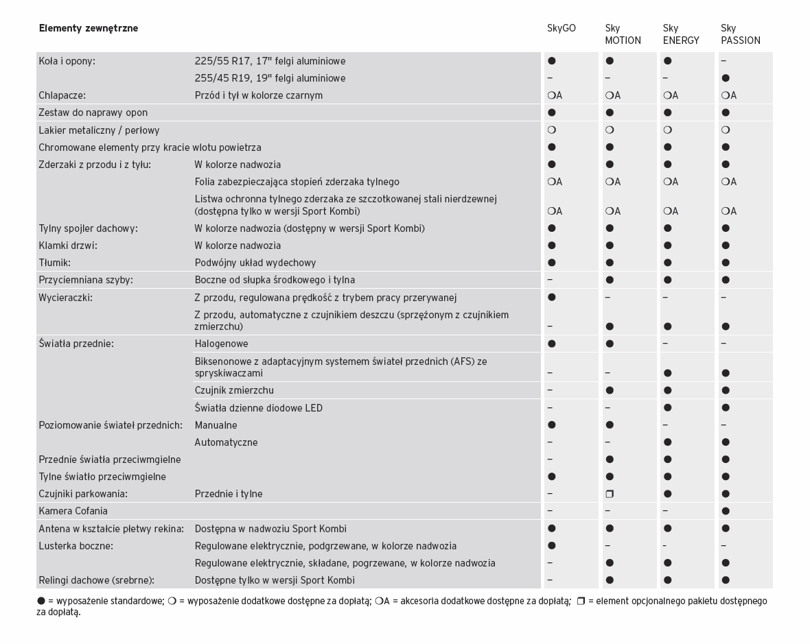 Wersje wyposażenia: