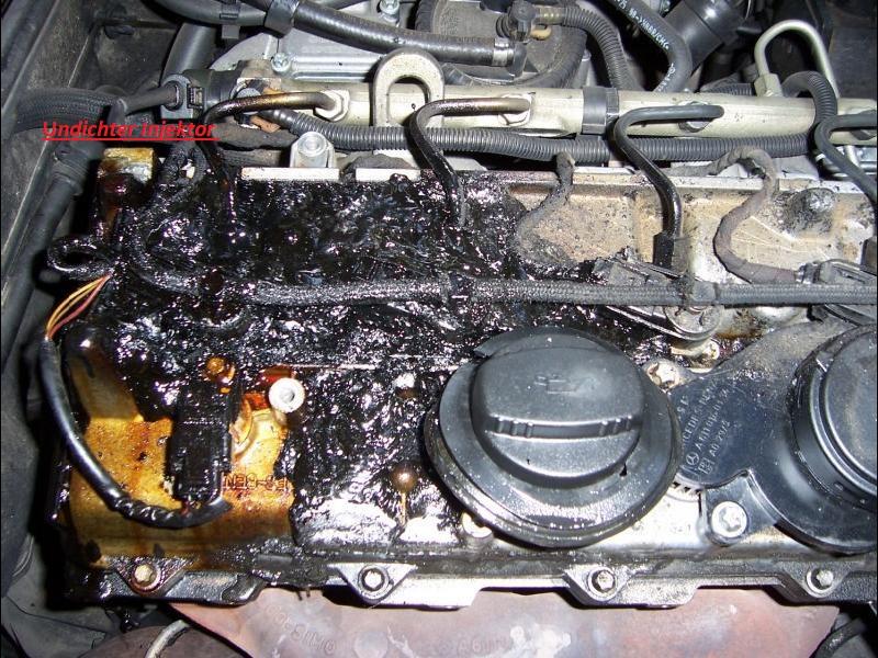 A tak na marginesie, problem podkładek pod wtryski to nie tylko ból Mazdy, na foto Mercedes Sprinter, wtryskiwacze na zewnątrz silnika ( w MZR-CD wtryski są pod pokrywą zaworów więc lawa wylewa się nie na silnik a do silnika