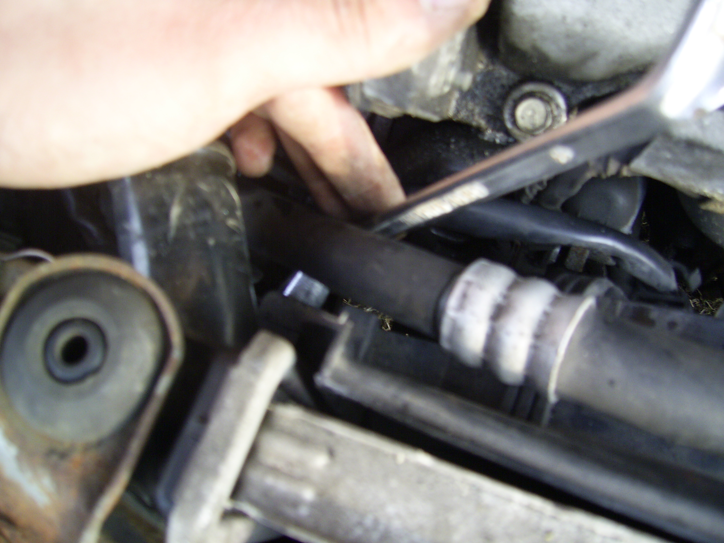 Następnie odkręcamy zbiorniczek (foto 1) od małego obiegu 2x 10,ściągamy przewód i rozszerzamy opaskę od krótkiego przewodu (foto 2),osuwamy go na bok (foto3) :