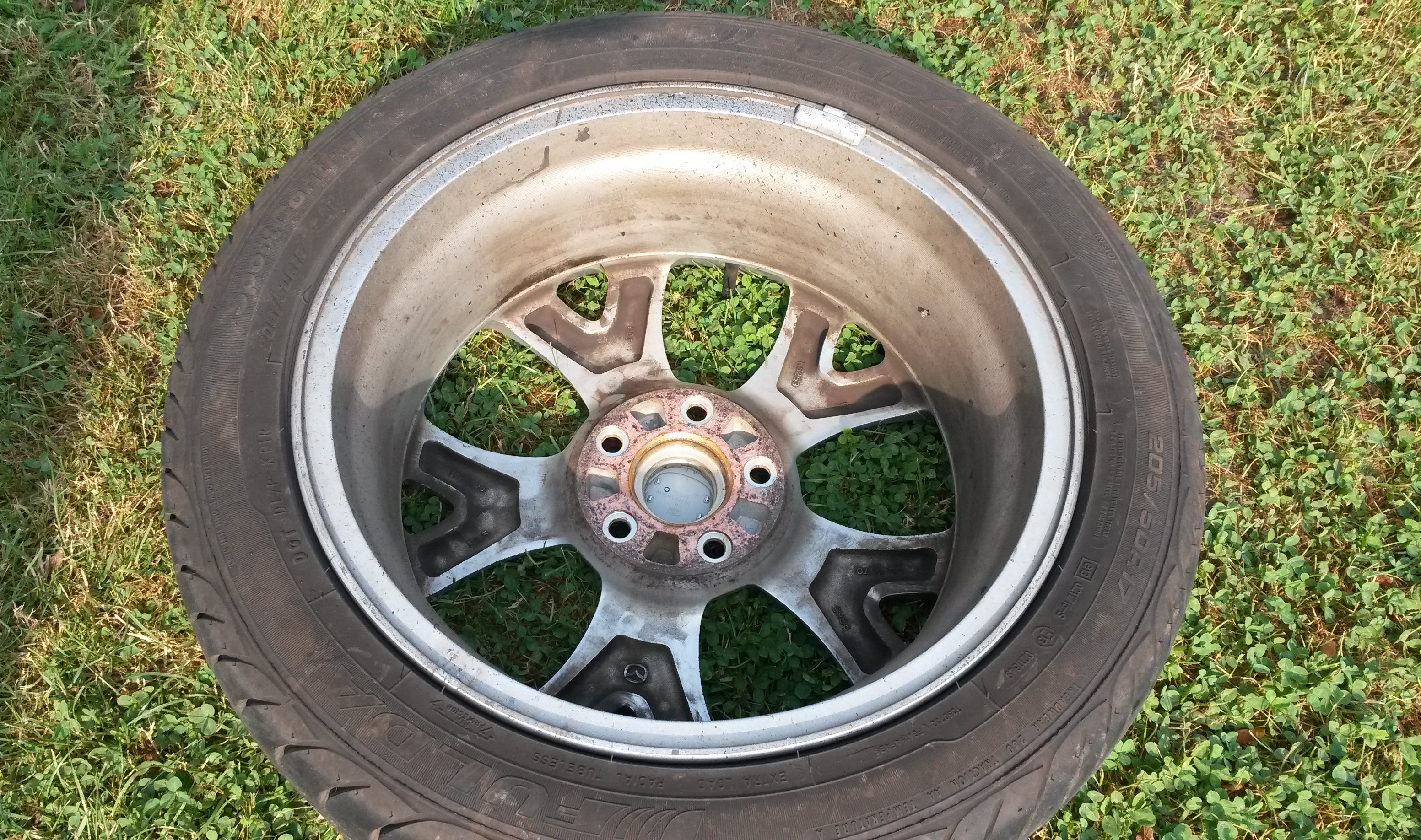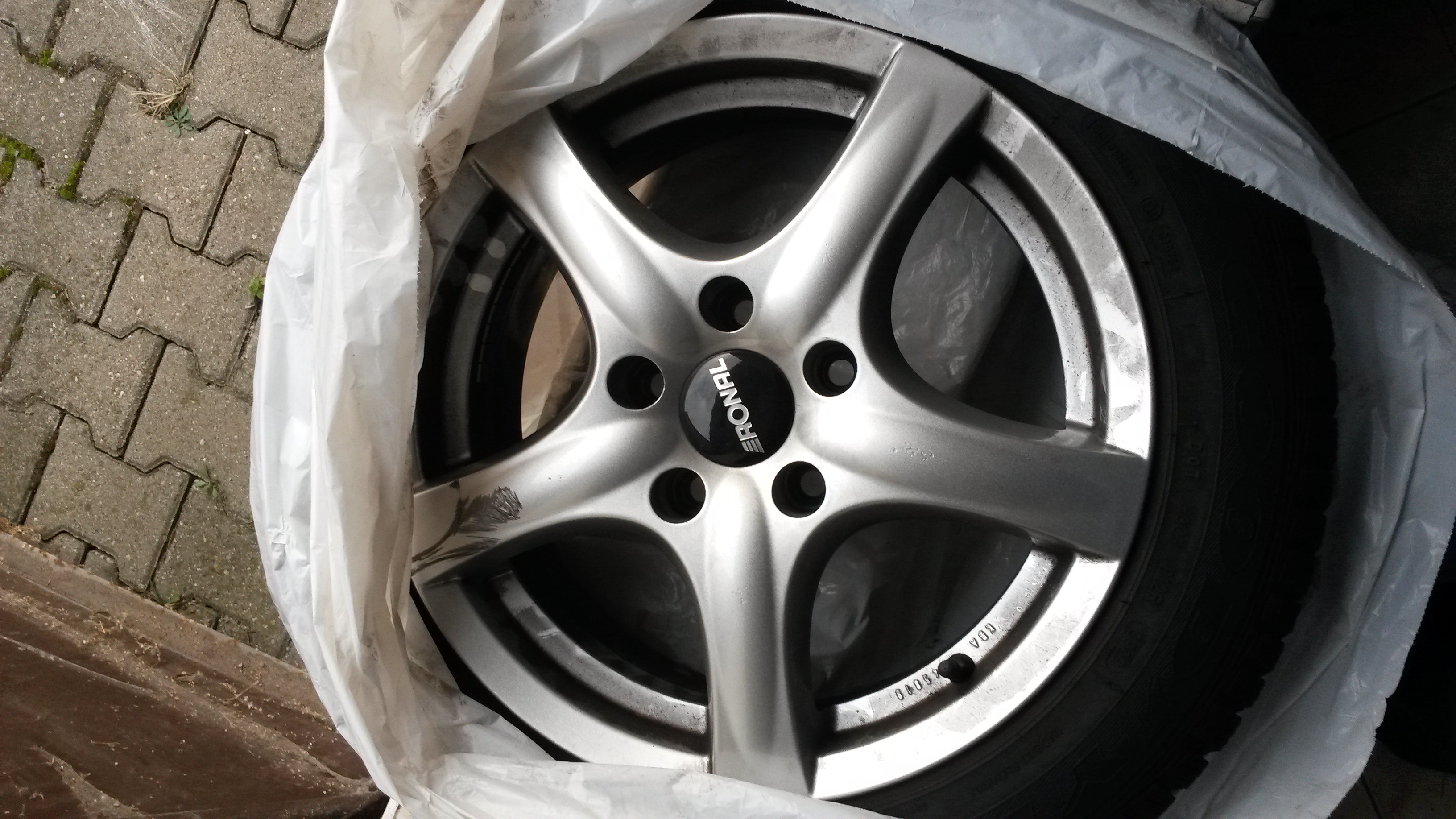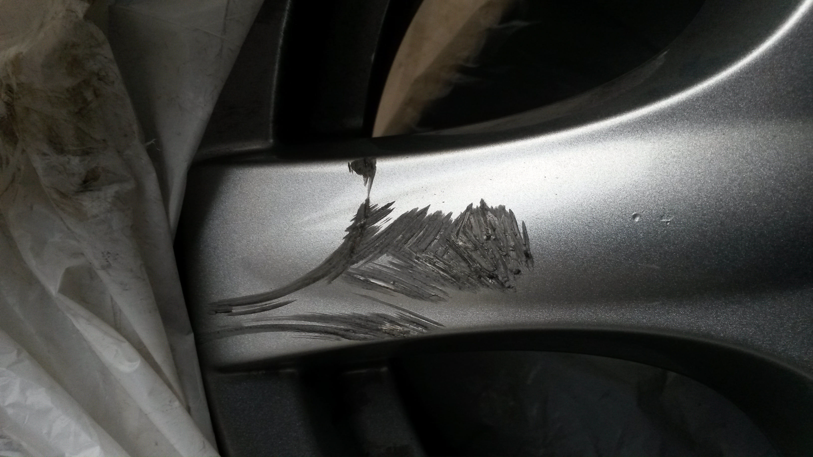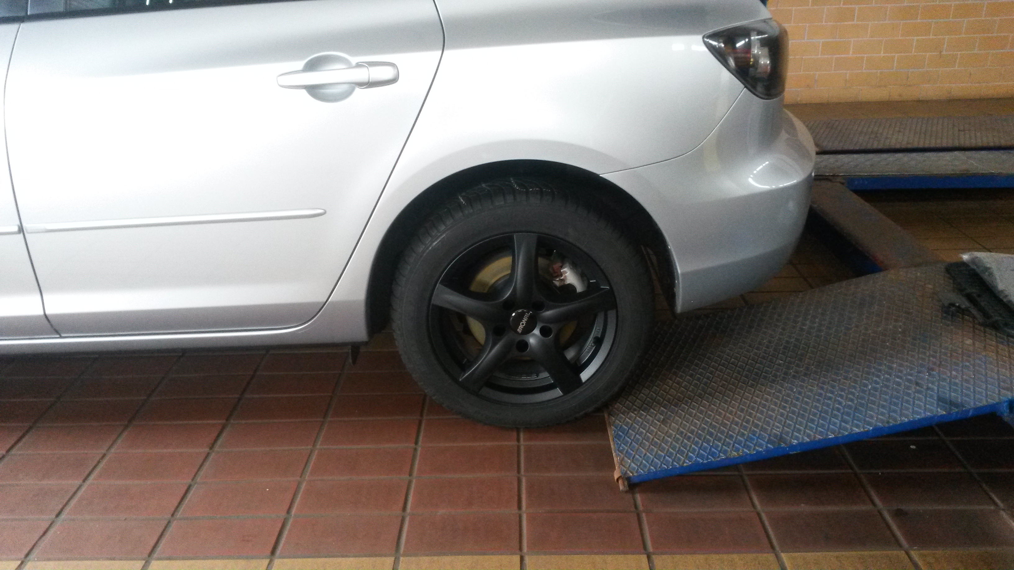 Wcześniej dałem felgę do naprawy i malowania (uszkodzona przez poprzedniego właściciela). Ponieważ nie dało się dobrać idealnie koloru do oryginału zostały pomalowane dwie, które idą na jedną stronę auta.