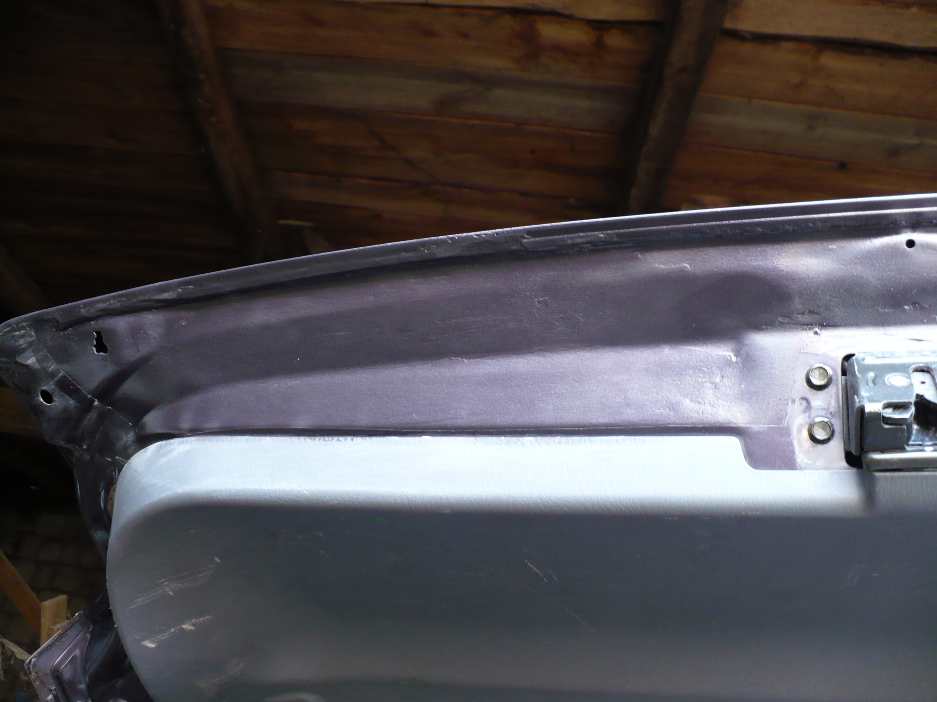 Wziąłem się za remont blacharki, papier ścierny w dłoń i szorujemy, potem Brunox epoxy, 3 warstwy tego i 24h schnięcia. Zdjęcia sprzed malowania brunoxem. Malowałem dolne ranty drzwi od kabiny, nadkola i wewnętrzną stronę klapy bagażnika. Progi i podłoga została zabezpieczona przez poprzedniego właściciela, więc spokój.