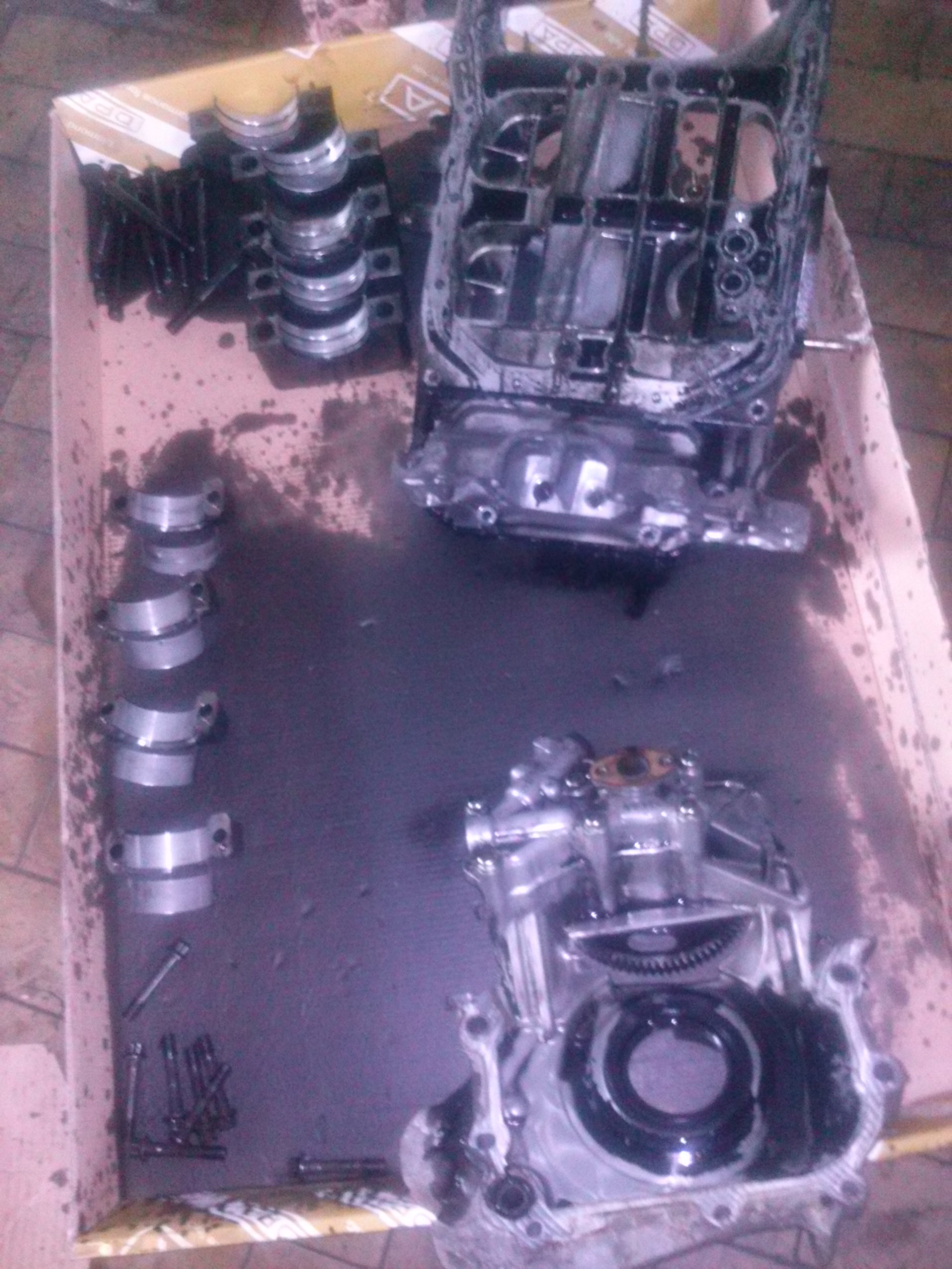 1) Czwarta panewka padnięta i niestety są lekkie ślady na korbowodzie – szlif/mocna polerka będzie konieczna. Plus oczywiście wymiana całej reszty, a co.