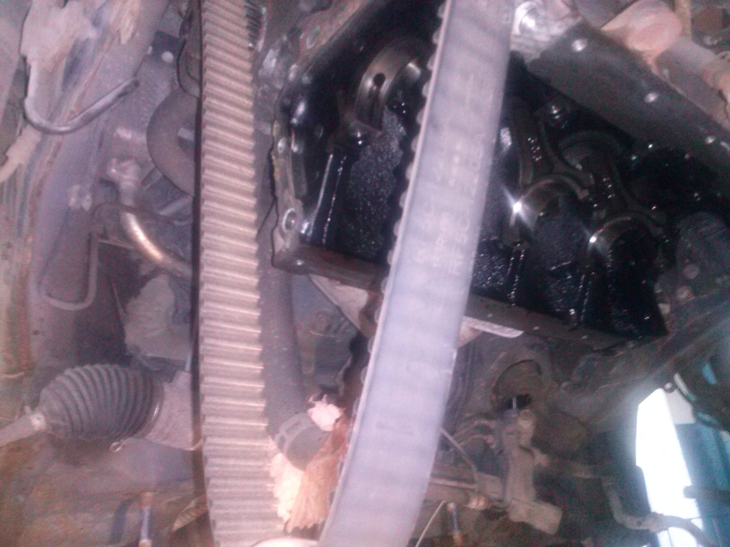 3) Rozrząd: dziwna sprawa, bo wg. mojej wiedzy był zmieniany niecałe 100kkm temu, więc za około 20kkm i tak planowałem zmianę. A tu wychodzi, że na pasku są doskonale widoczne napisy (normalnie ścierają się najpóźniej po 40-50kkm!), a pompa też wygląda na świeżutką. Szumią natomiast rolki, a napinacz nosi ślady zużycia. Zmieniamy zatem również rozrząd.