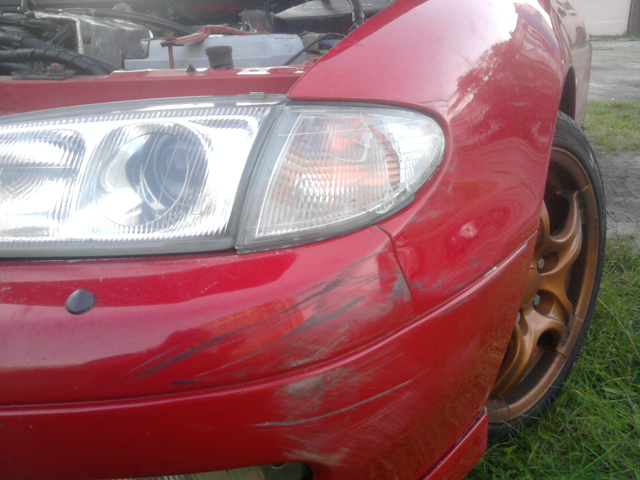 Pierwsze zdjęcia to szkoda. Naprawa widoczna niżej. Czyli od zdjęcia kierunkowskazu. Wyprostowałem błotnik (mało widać na zdjęciach .... każde zdjęcie niżej to poprawka błotnika)