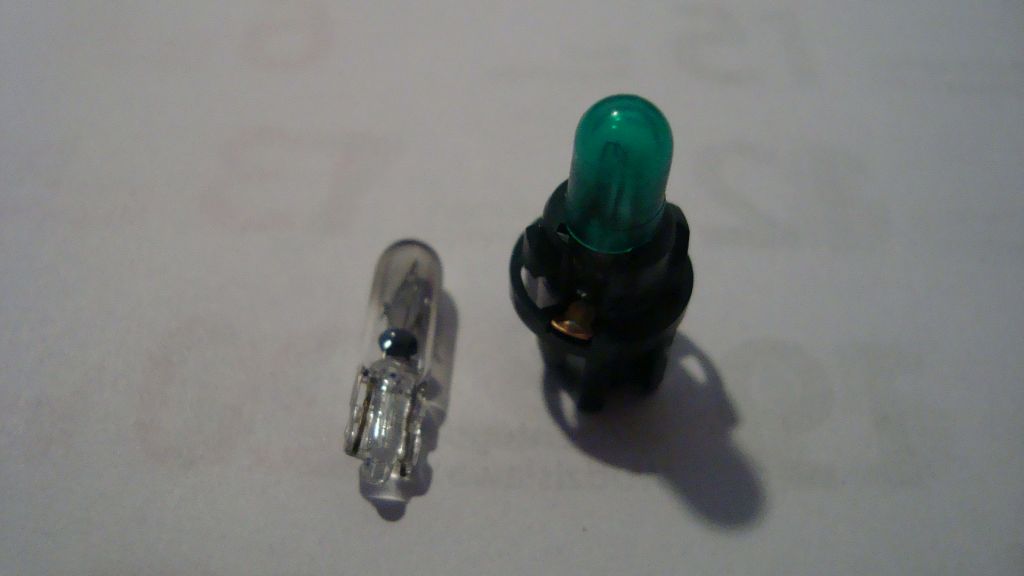 Jako że podświetlenie licznika przeważnie jest w kolorze zielonym, to na żarówkach jest zamontowany filtr plastikowy w owym kolorze.