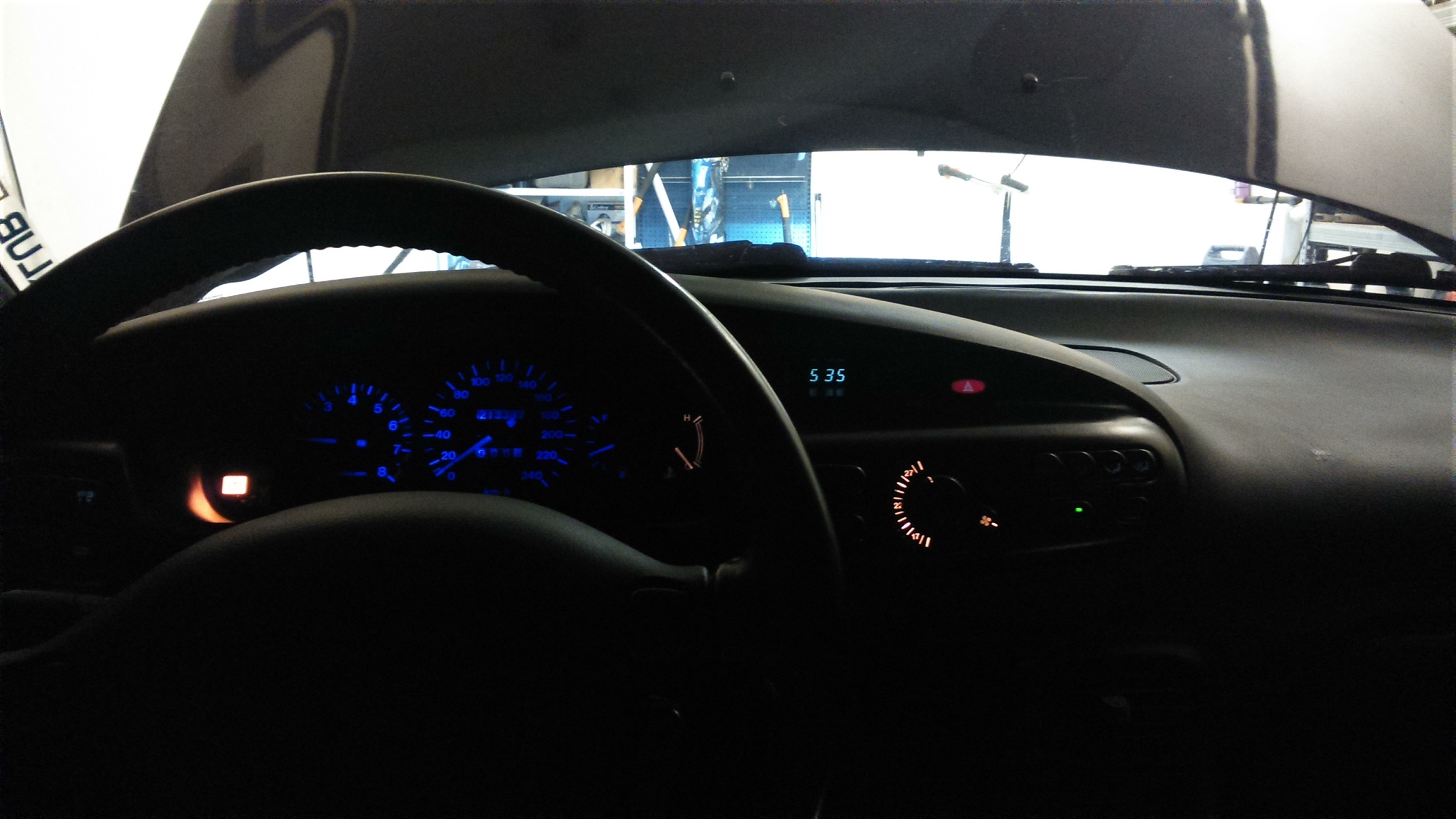 Dzisiaj było parę napraw i czyszczenie, w pierwszej kolejności zerwałem "wygłuszenie" zamontowane pod maską, później wyczyściłem " z grubsza" silnik (Ci którzy widzieli wcześniej wiedzą że wyglądał jak jeden wielki syf) a na zakończenie dnia naprawiłem ledy na zegarach i panel od ogrzewania ( w ledach nie łapały styki, a oświetlenie w ogrzewaniu było rozłączone) Żeby wszystko było idealnie zamierzam kupić czerwone żarówki do zegarów i niebieskie zamienię do podświetlenia ogrzewania.