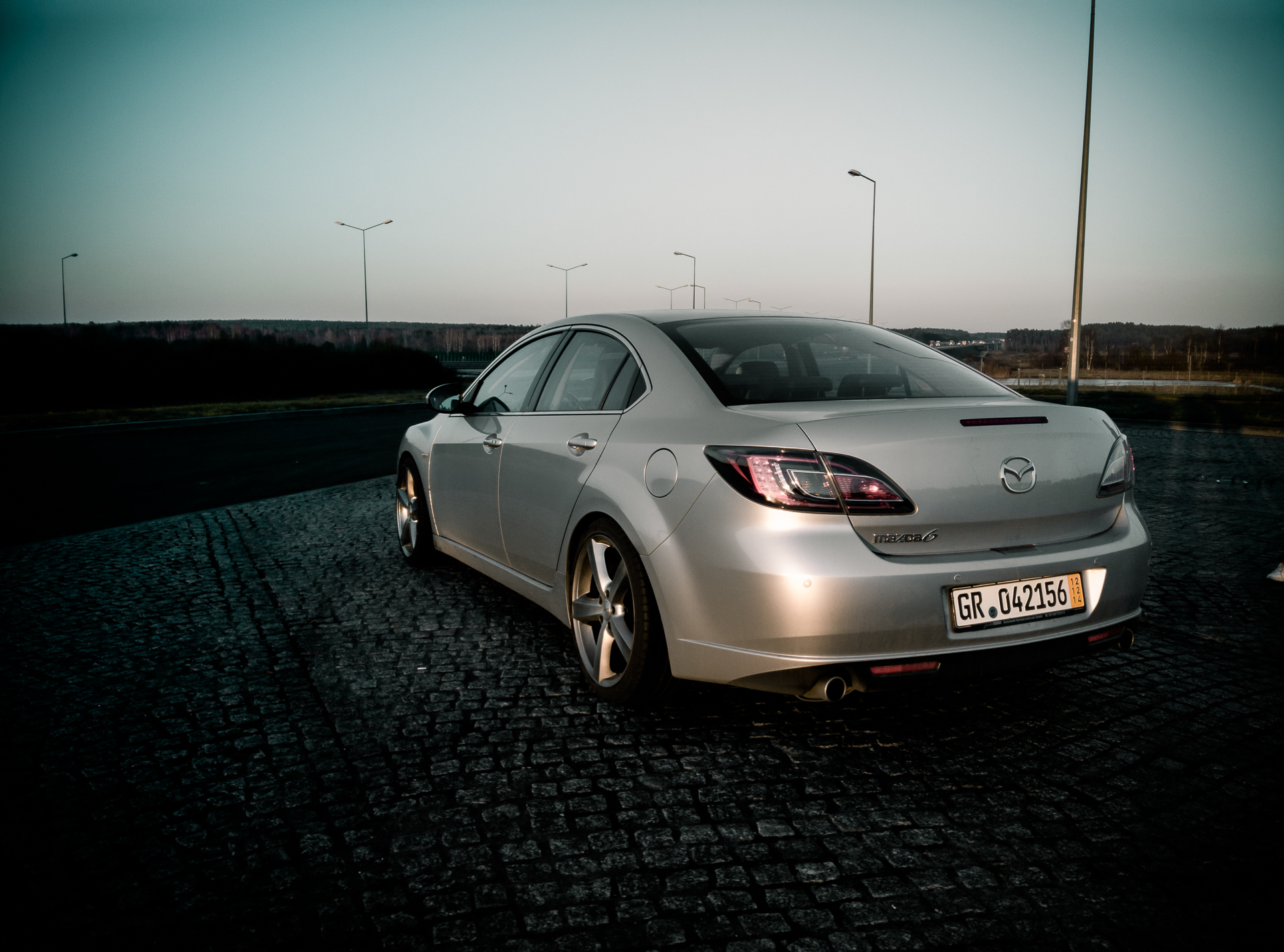 Po odebraniu wszystkich dokumentów Krystian rusza w dalszą drogę udzielając nam wcześniej kilku cennych wskazówek, dopytując czy wszystko mamy i wszystko wiemy oraz prosząc oczywiście o informacje po przekroczeniu granicy. My z małżonką wyruszamy zaś w drogę powrotną i po 7h 30m docieramy do oddalonego o 800km domu naszym nowym nabytkiem – Mazdą 6 2.5 GH TOP (z Eibach Pro-kit i felgami 19", ET40) w kolorze Sunlight Silver Mica. Dwa zdjęcia z DE i jedno po rejestracji: