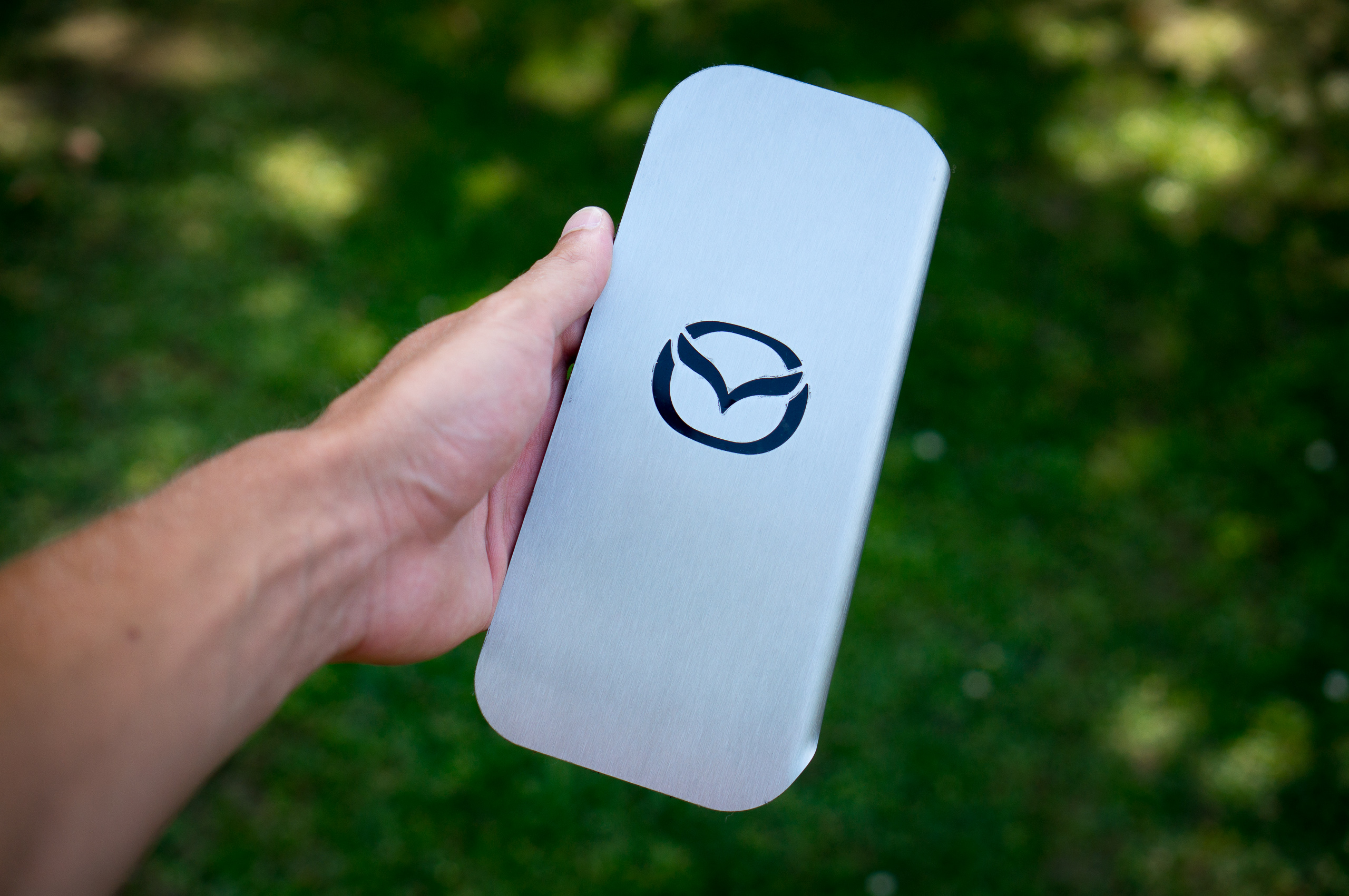 wymiana żarówek i ramek prawdopodobnie jutro, tymczasem dziś pozbyłem się naklejki z niemieckiego salonu Mazdy i tak sobie myślę, że może by w to miejsce wrzucić naklejkę klubową – mam pod ręką 20cm, w grę wchodzi wersja albo biała (to mój pierwszy typ) albo niebiesko-biała. Mała wizualizacja w Paint.net ;)