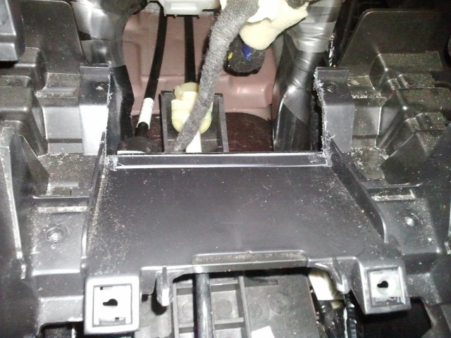 8. Wyciągamy tunel poza auto i zaczynamy piłować miejsce na CB. Wyciągamy z popielniczki wenętrzną blaszkę.