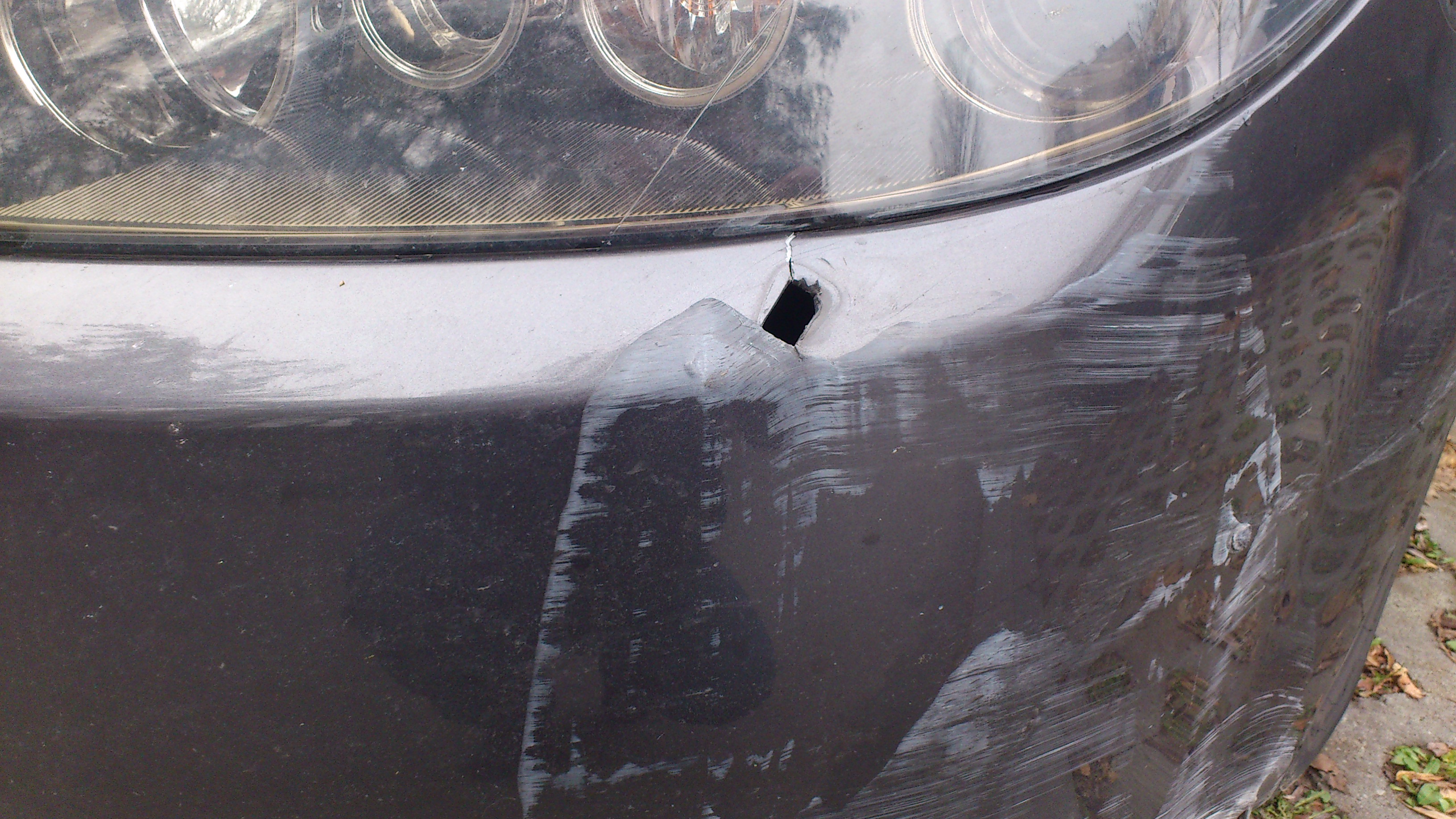 Uuuupsss,dobrze ze tylko tyle sie stało. Ale taki niepozorny slupek a tak zdewastowal zderzak. <płacze>