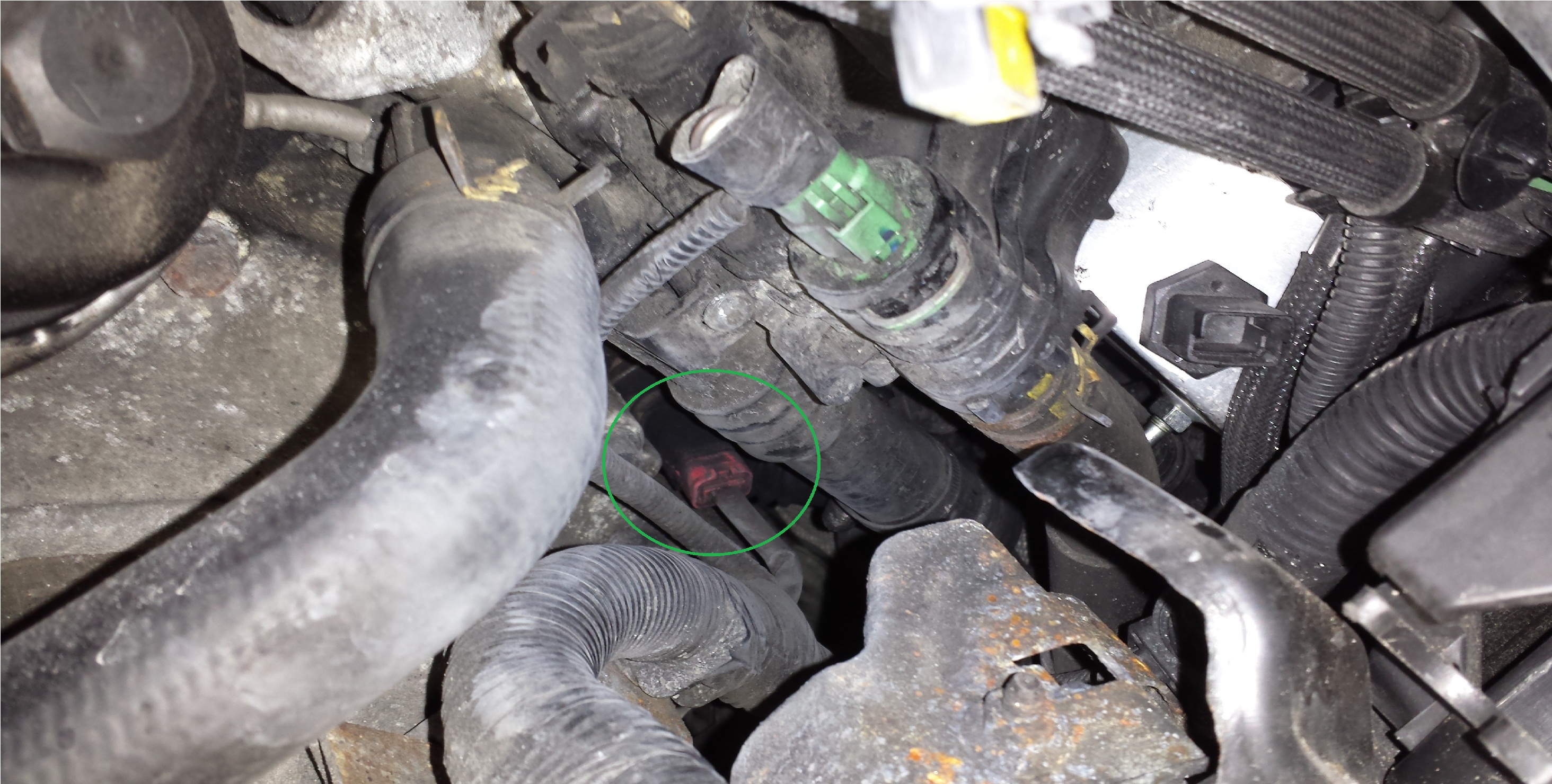– drugie zdjęcie na zielono zaznaczyłeś wtyczkę różowo/czerwoną ją odpinasz od czujnika ciśnienia paliwa
