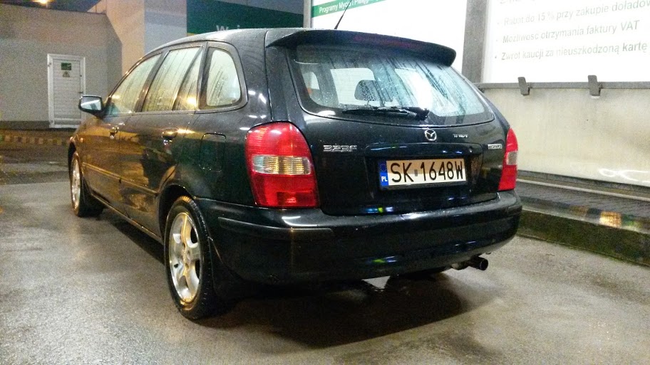 Chciałbym przedstawić moją Mazdę. Auto posiadam od czerwca 2014r, przyznam szczerze że na początku w ogóle nie brałem BJ'tki pod uwagę jednak w tłumie Golf'ów, Leonów, Signum, Stilo i jeszcze paru (wiem że rozstrzał spory ale jakoś tak było) udało mi się znaleźć jeden egzemplarz blisko domu. Szybka decyzja i umówiliśmy się na jazdę próbną. Samochód nie był bez wad (o tym może kawałek dalej) ale miał dużą zaletę: stosunkowo nową sekwencyjną instalację LPG, do tego był regularnie serwisowany i użytkowany głównie w trasie (Wrocław-Trzebnica). Powrót do domu i 2 dni później auto było moje.Teraz suche dane....