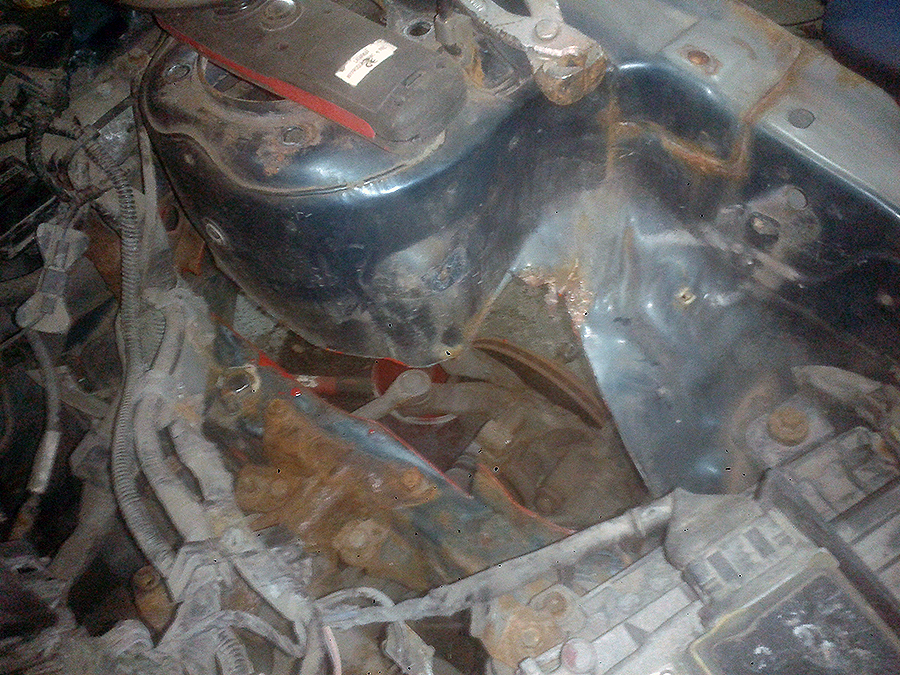 Na jesieni przed okresem zimowym postawiłem zająć się kolejną usterką lakierniczą...wydawała się początkiem końca tego samochodu... Rdza pojawiła się ponieważ jeden z moich poprzednich właścicieli (blondi's boyfriend) urwał osłonę silnika i skutkiem tego ruda zaatakowała nadkole.