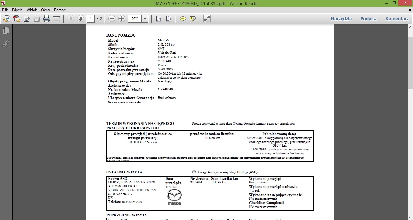 No i wg dokumentów od Marianka ogromna różnica w przebiegu
