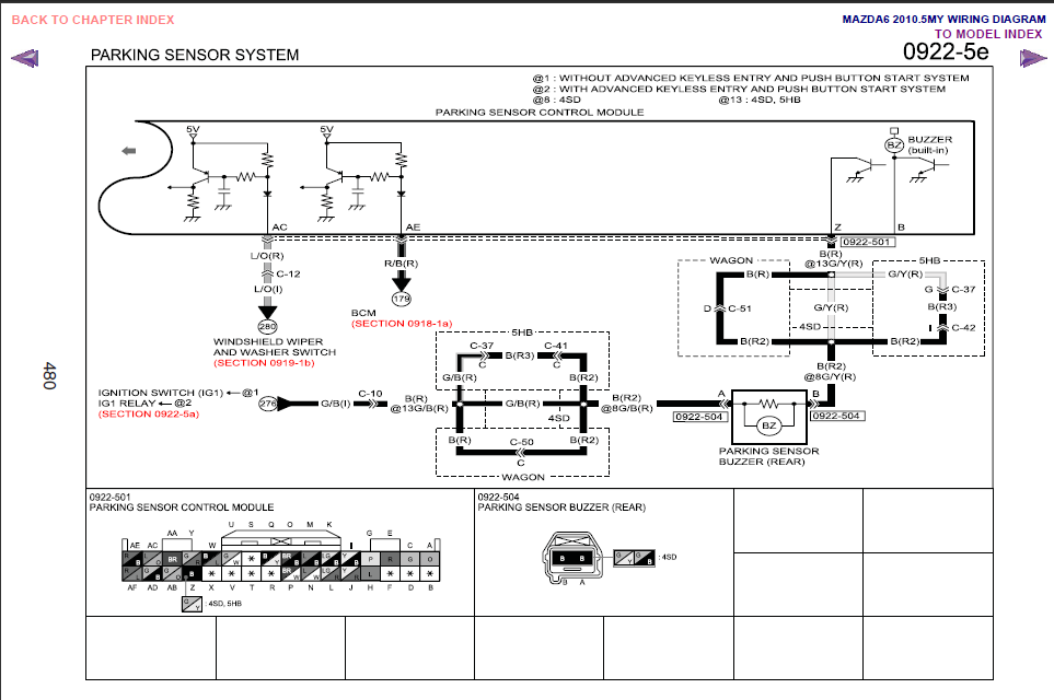 Niedawno kupiłem Mazdę 6 2.0 MZR-CD GH wyprodukowaną w 2008 roku. Niestety nie działa czujnik cofania. O ile z czujnikami zamontowanymi w przednim zderzaku wszystko jest w porządku (odnajdują przeszkody i sygnalizują je dźwiękiem dochodzącym z przednich głośników) to czujniki w tylnym zderzaku są całkiem "martwe". Poza tym włączając czujniki cofania przyciskiem na desce rozdzielczej system informuje mnie o błędzie serią pisków. Jest to seria trzech pisków powtórzona pięć razy (pip, pip,pip <przerwa> pip, pip,pip <przerwa> pip, pip,pip <przerwa> pip, pip,pip <przerwa> pip, pip,pip). Dźwięki te dochodzą z tyłu samochodu.