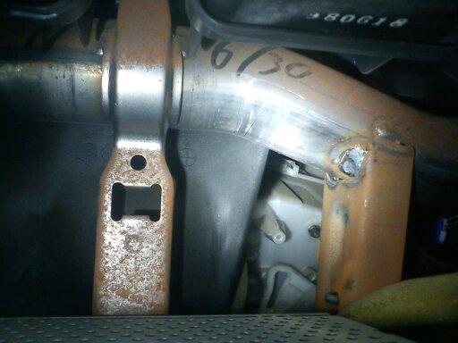 Wzmocnienie przednie wykonane z jakiejś stali. Też to mam, też spawy są rude. Ale spoko, to nie korozja wgłębna a nalot wierzchni. Takie zabezpieczenie przed korozją w postaci niby-korozji :P ;)