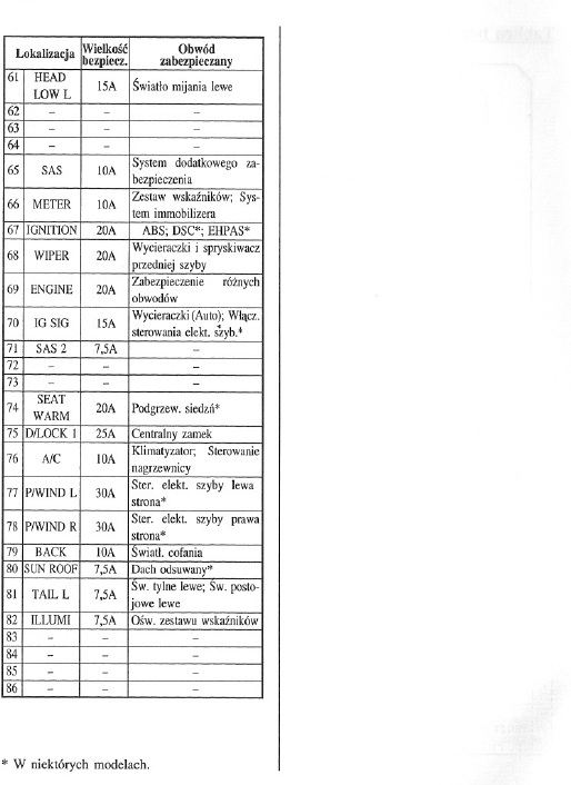 czy dysponuje ktoś lub mógłby wrzucić z książki serwisowej rozkład bezpieczników dla Mazda 3 BK, rocznik 2006 ? Nie działa mi lewe przednie pozycyjne, po wymianie żarówy nadal kiszka, nie dysponuję manualem