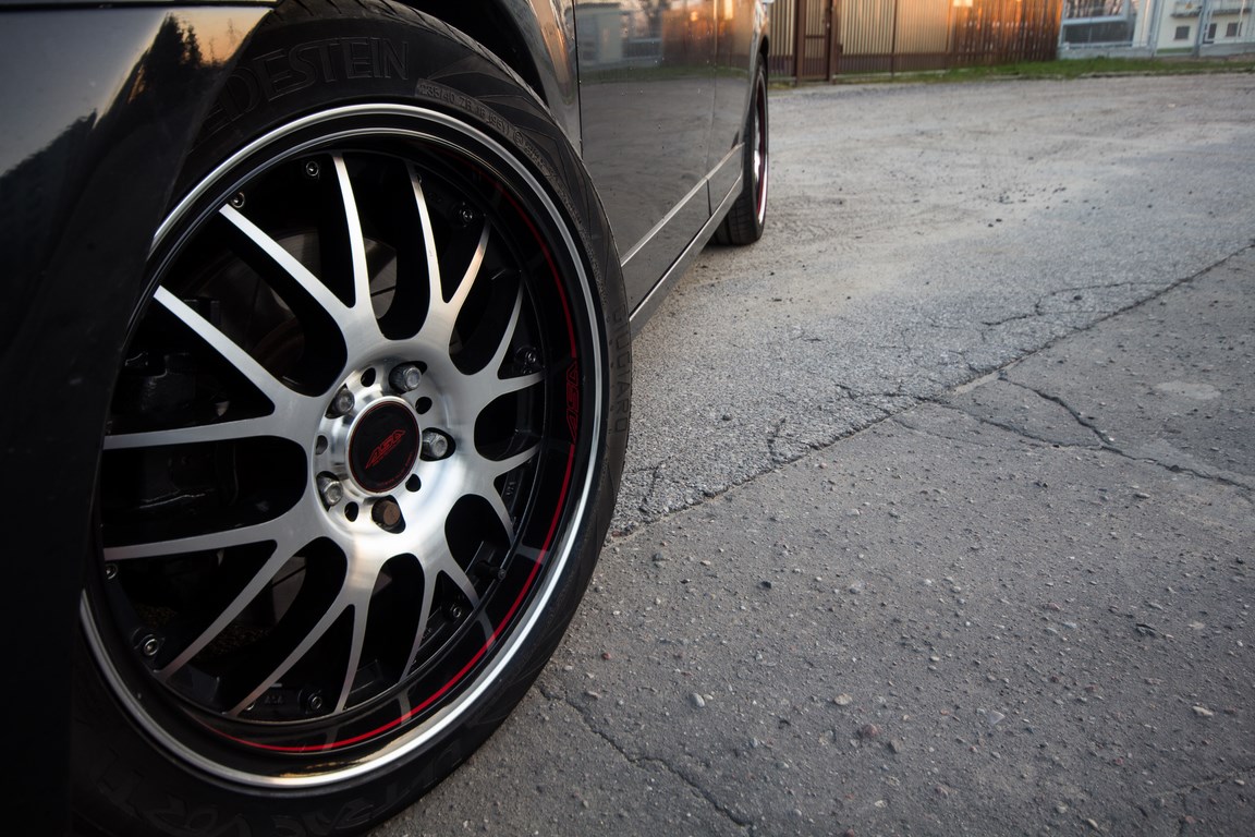 Na obecną chwilę nic nie przyciera, (opony mają rozmiar 235/40 więc do wąskich nie należą), ale z tyłu jest delikatna pokraczka, więc to też może mieć wpływ na to, że kołach pod ciut innym kątem wchodzą w nadkola.