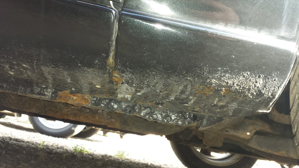12. W progu widać spawy po wstawianiu (już ponownie zjadanych) nadkoli. Na wysokości górnej częsci lampy, paskudne przejście.