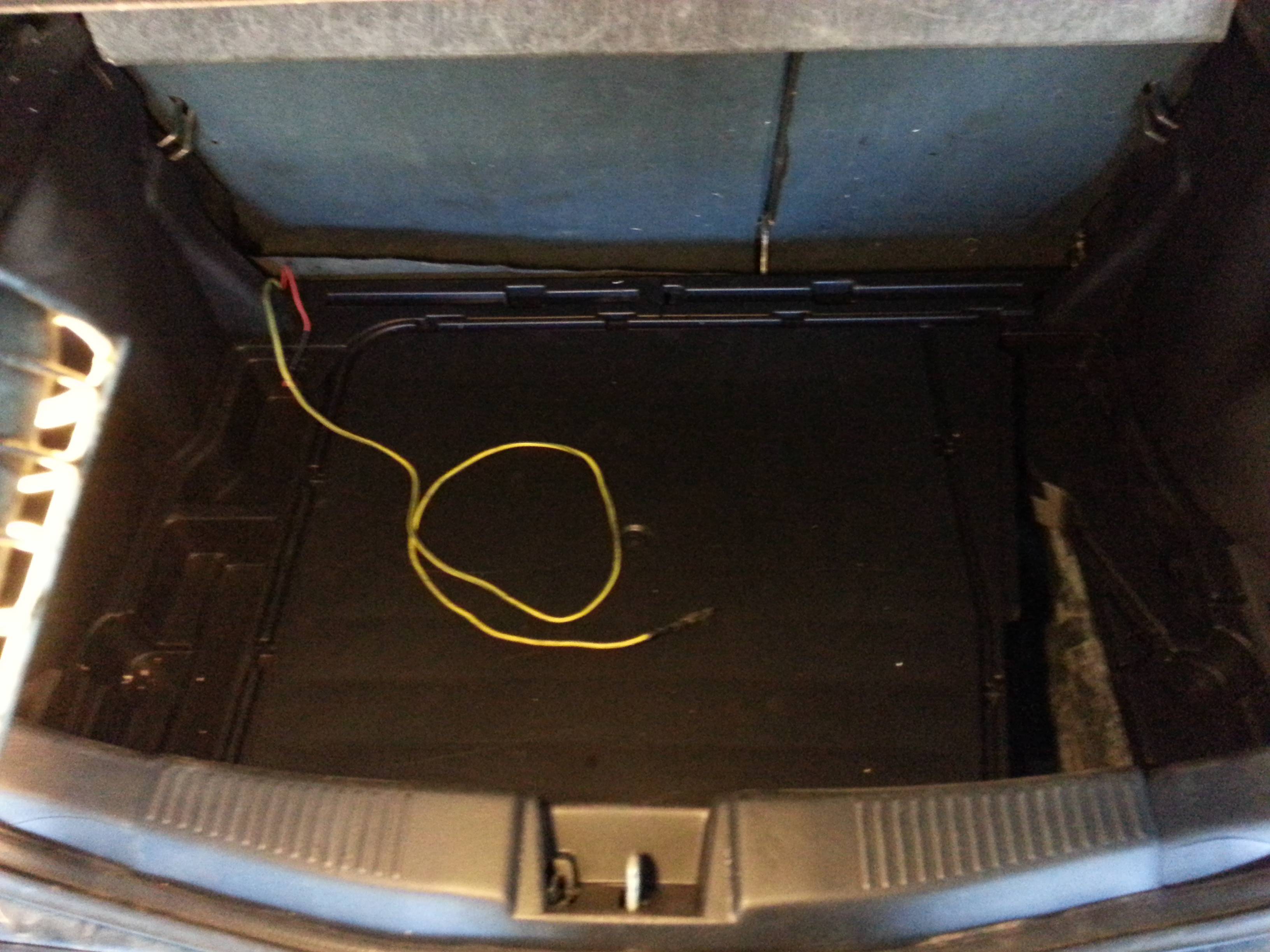 – pomalowane podłoga i plastiki bagażnika. Fotka słaba i marna, lepsze foty będą gdy już skończę bawić się z bagażnikiem. Zostało jeszcze dociąć i ładnie umocować wykładzinę oraz obicie foteli. Przy okazji wleci wzmacniacz oraz okablowanie, by już potem do tego tematu więcej nie wracać.