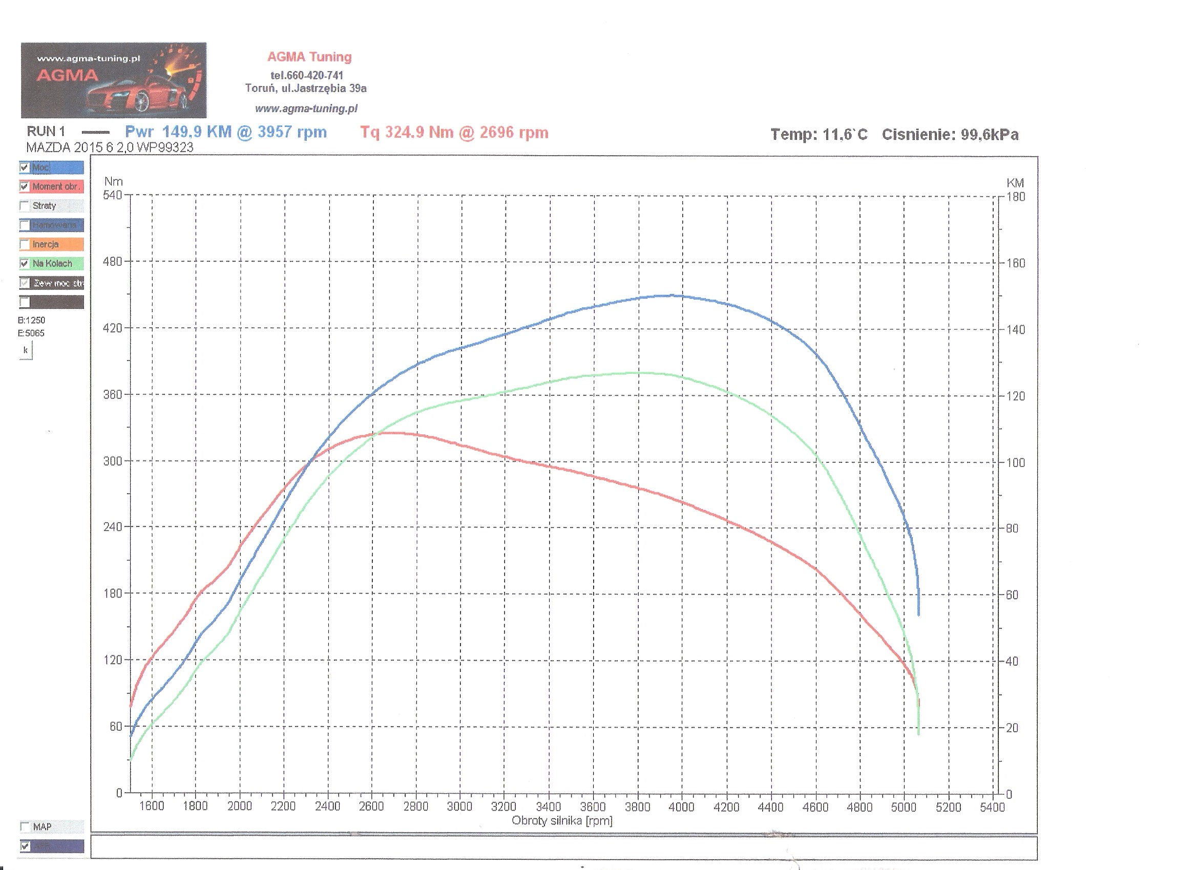 A teraz o Madzi <czytaj> wjechałem na hamownię sprawdzić na czym stoję <oczko> a właściwie czym jeżdżę :P wyglądało to mniej więcej tak: